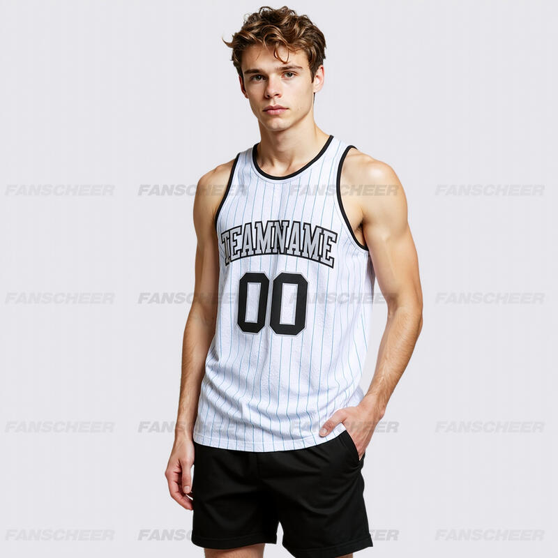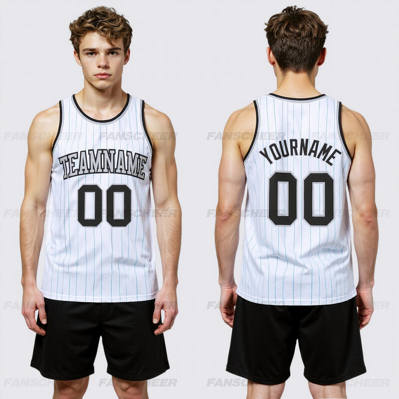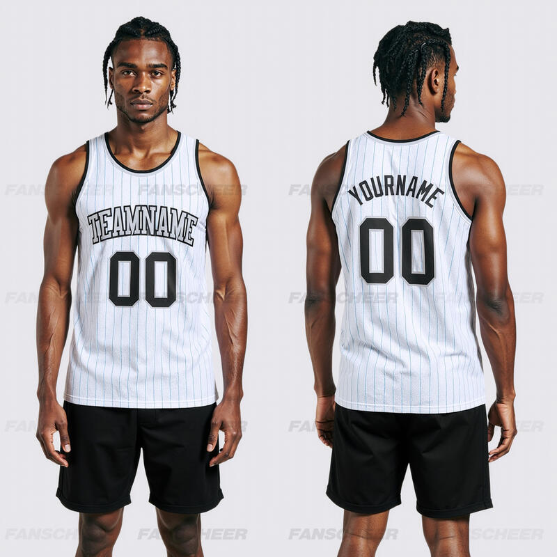 Custom Pinstripe White Basketball Jersey - Authentic Quality, Classic Stripes, Moisture Control