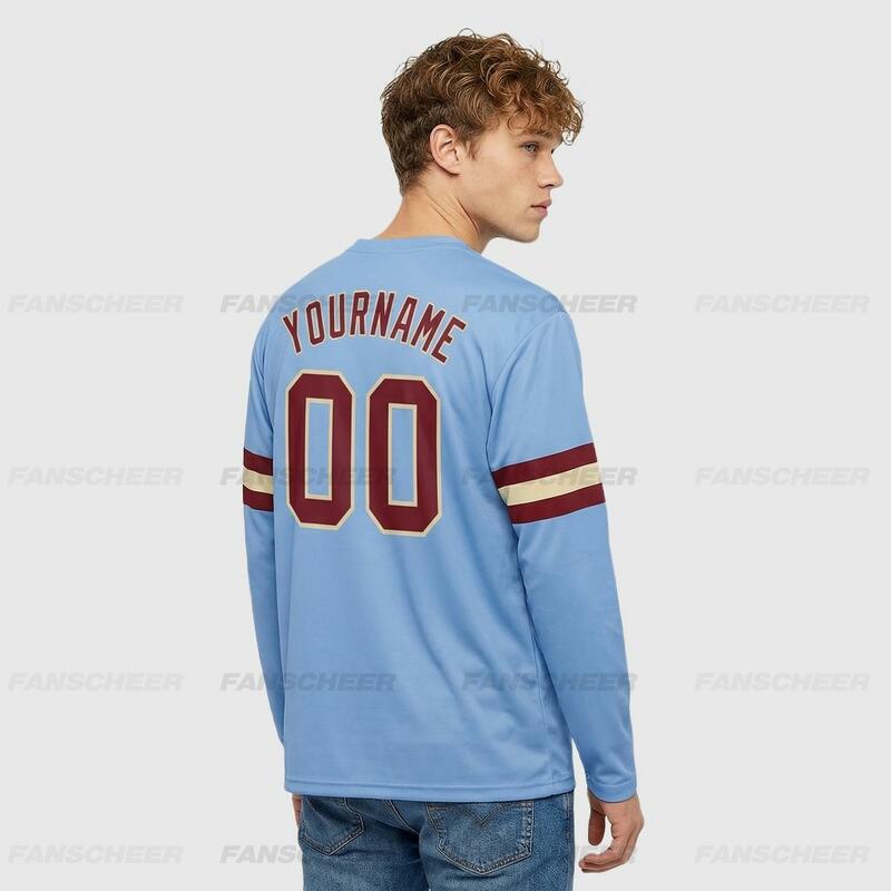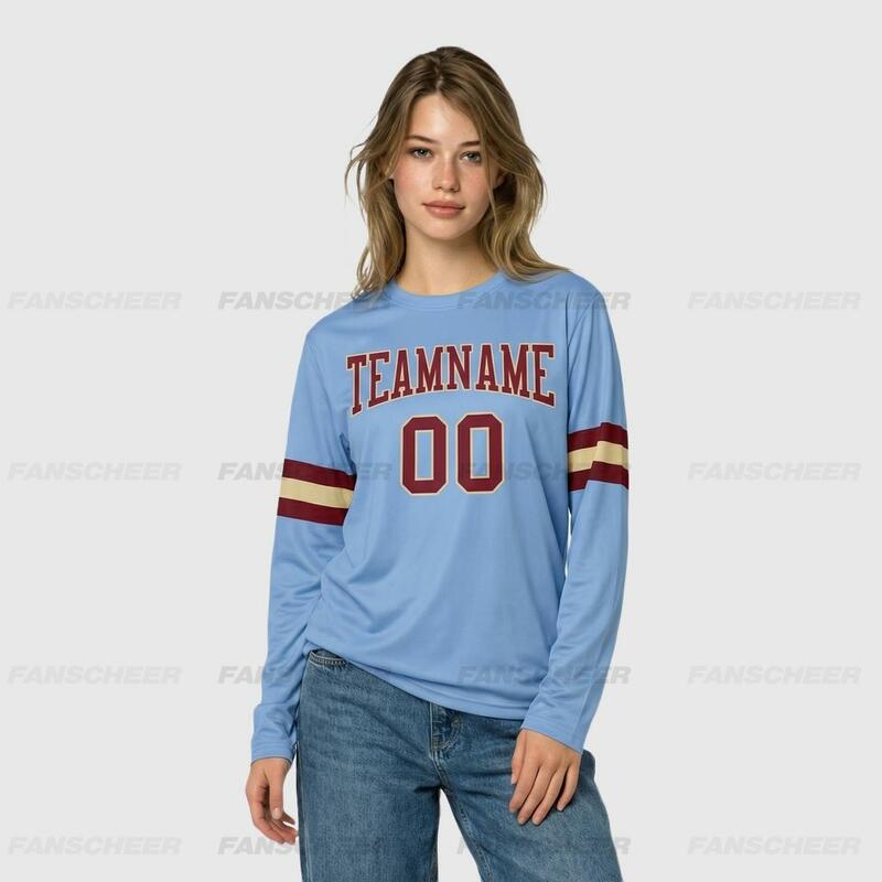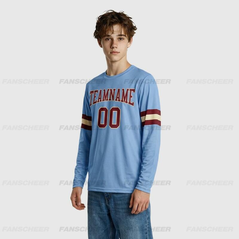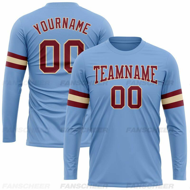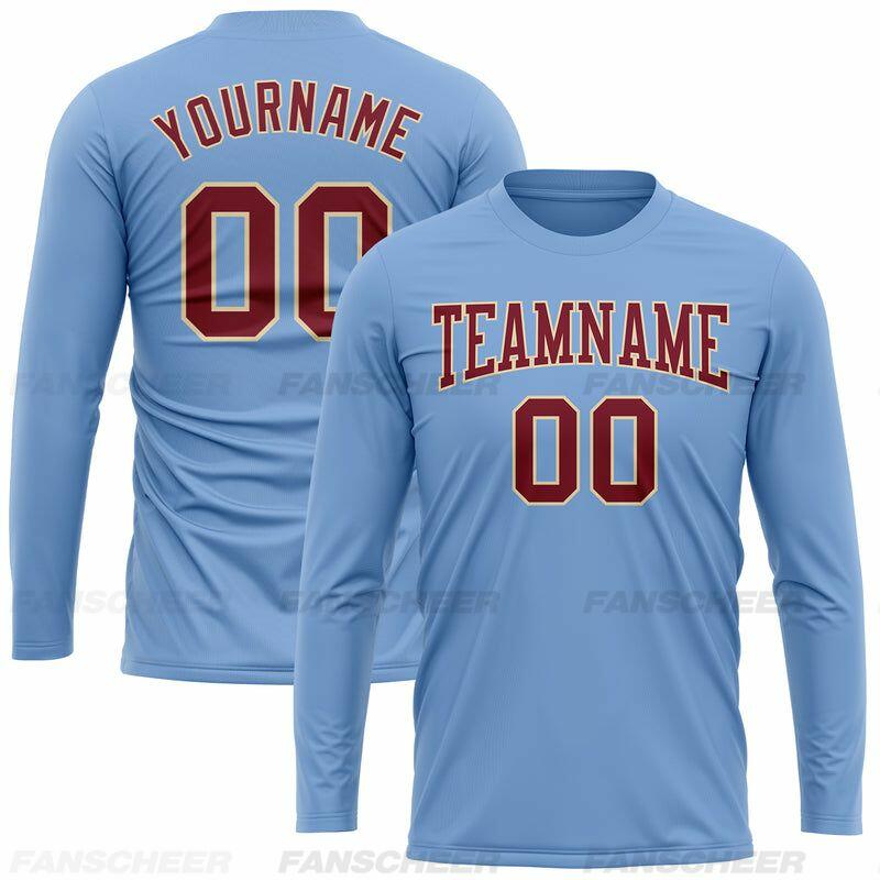Custom Powder Blue-Crimson Long Sleeve Performance T-Shirt