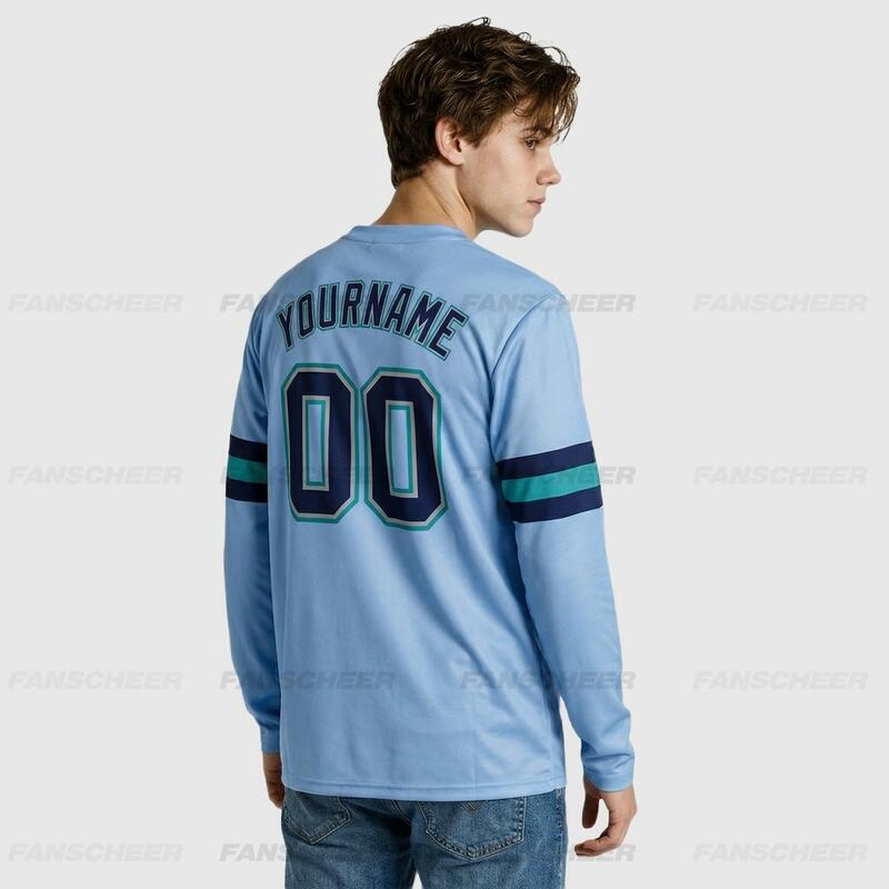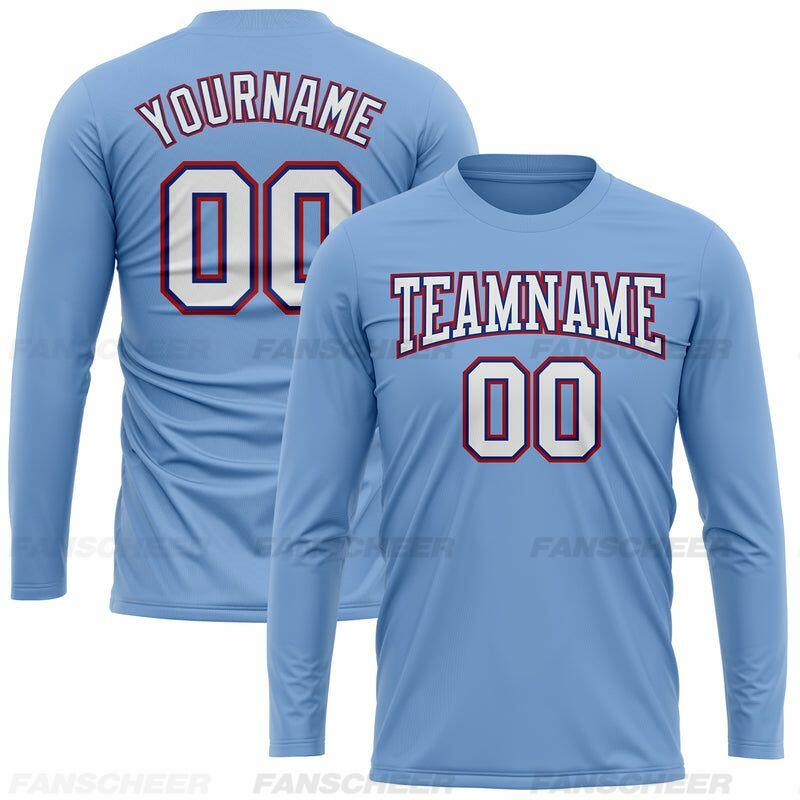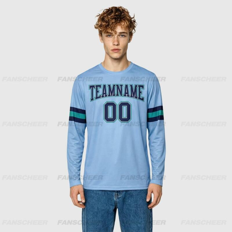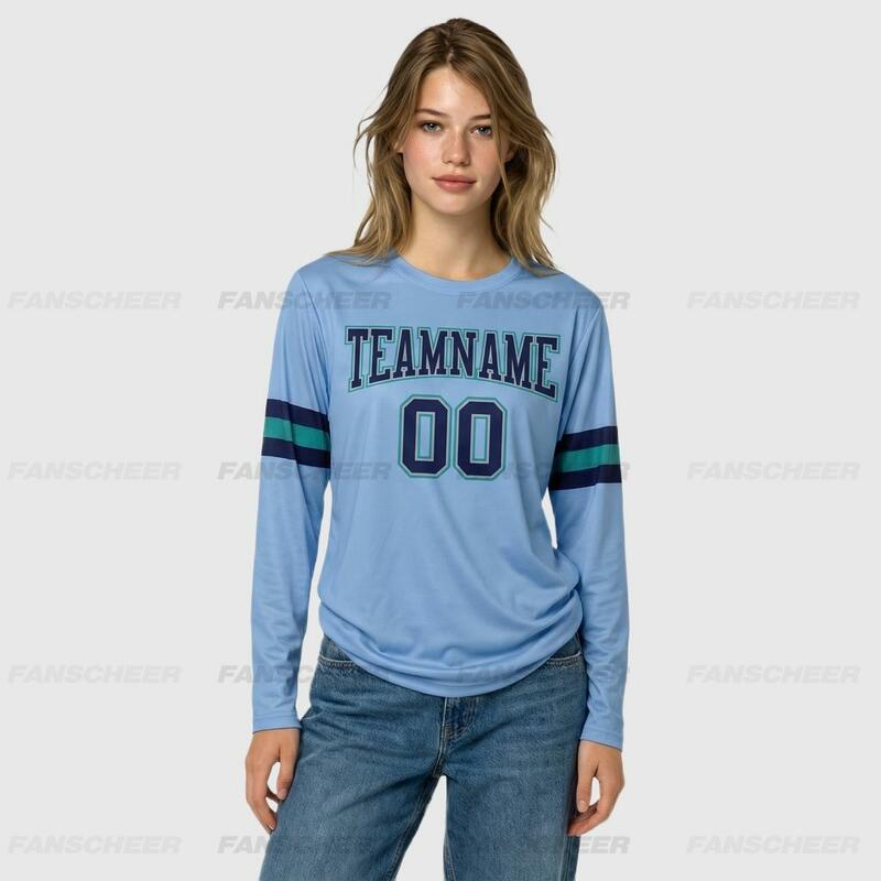 Custom Powder Blue-Navy Long Sleeve Performance T-Shirt