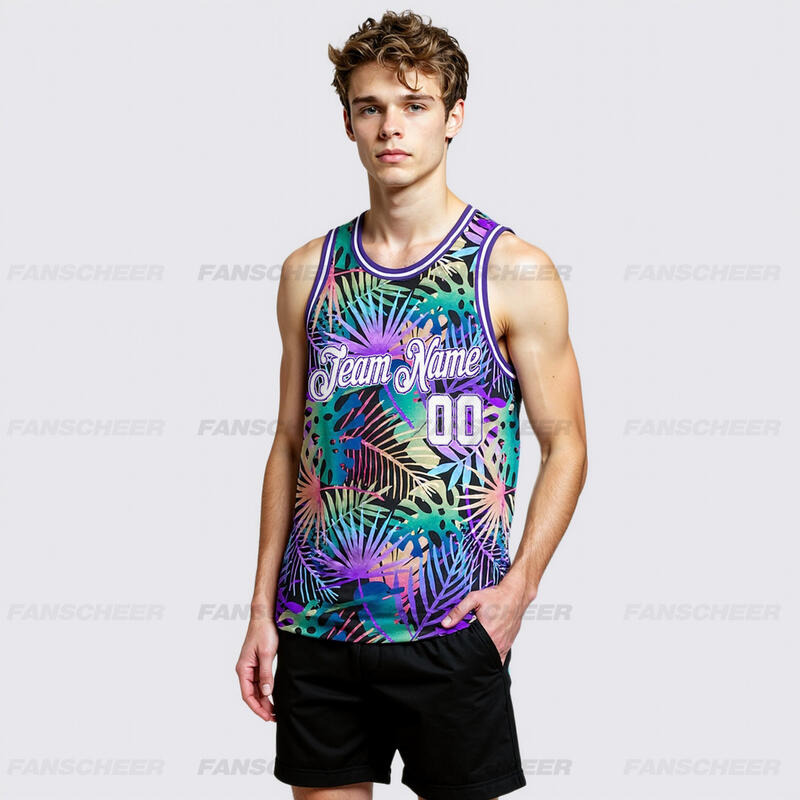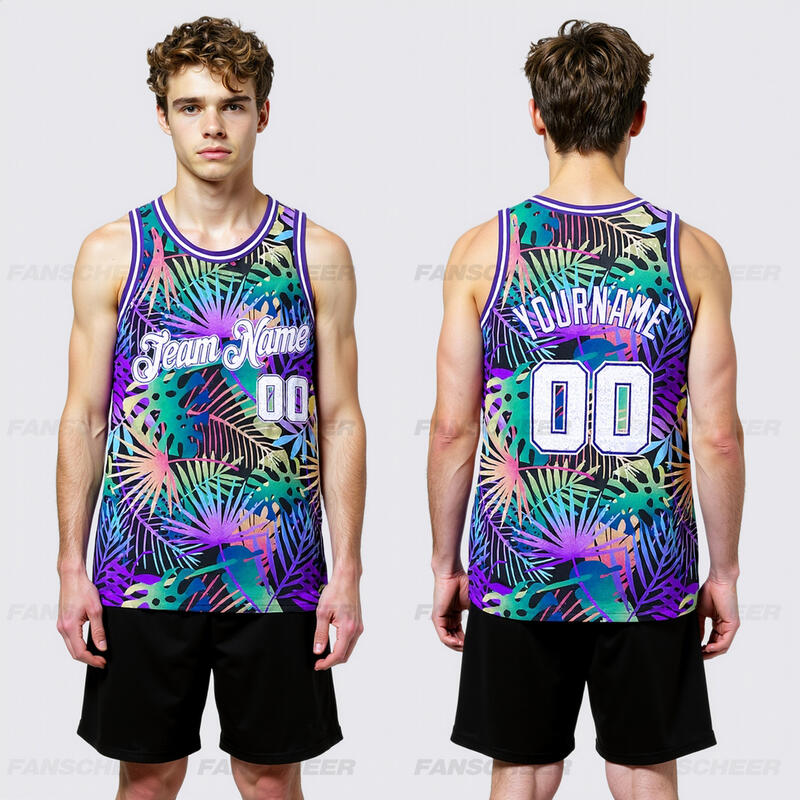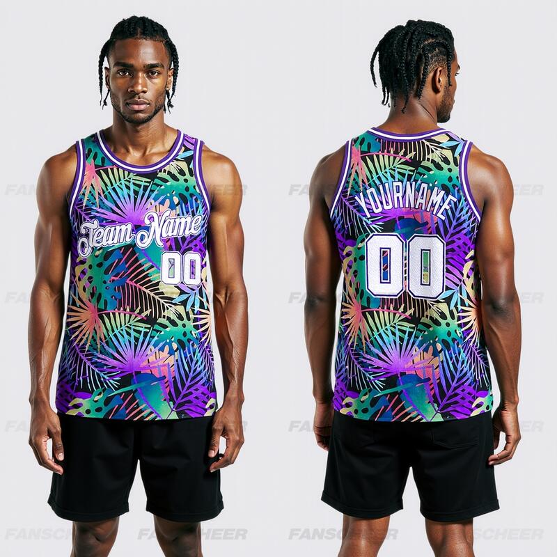 Custom Purple White-Purple 3D Pattern Tropical Hawaii Plants Authentic Basketball Jersey