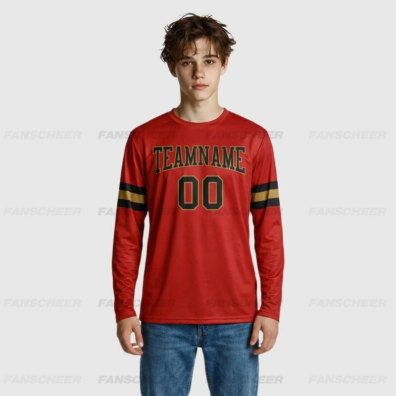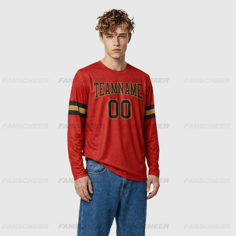 Custom Red-Black Long Sleeve Performance T-Shirt