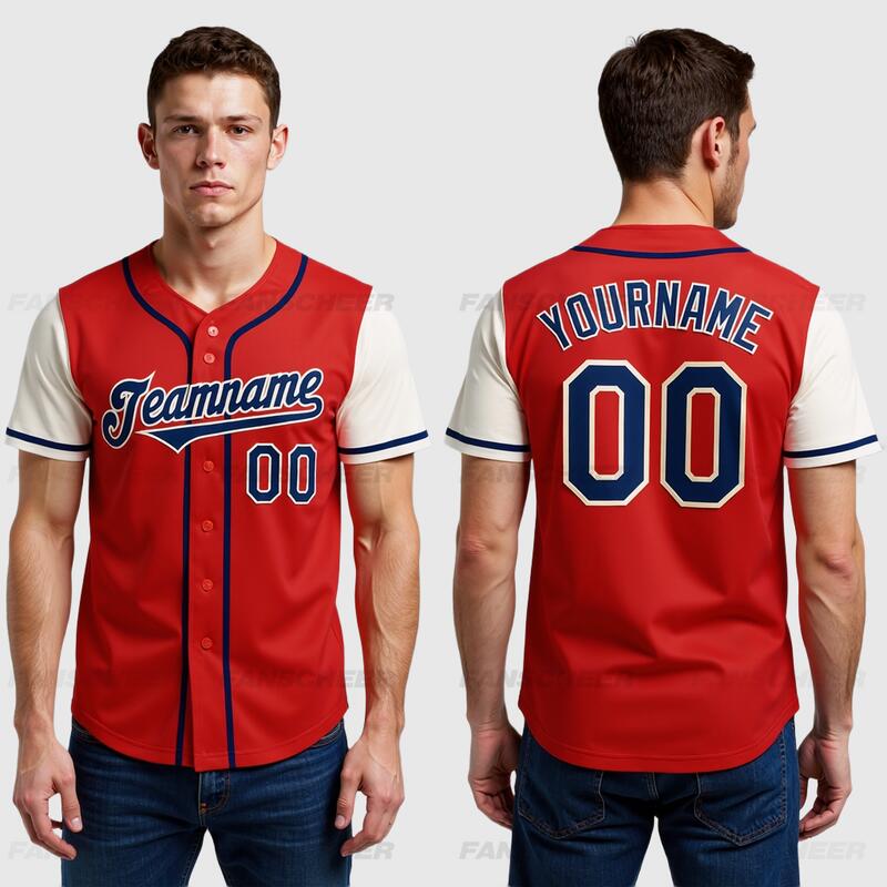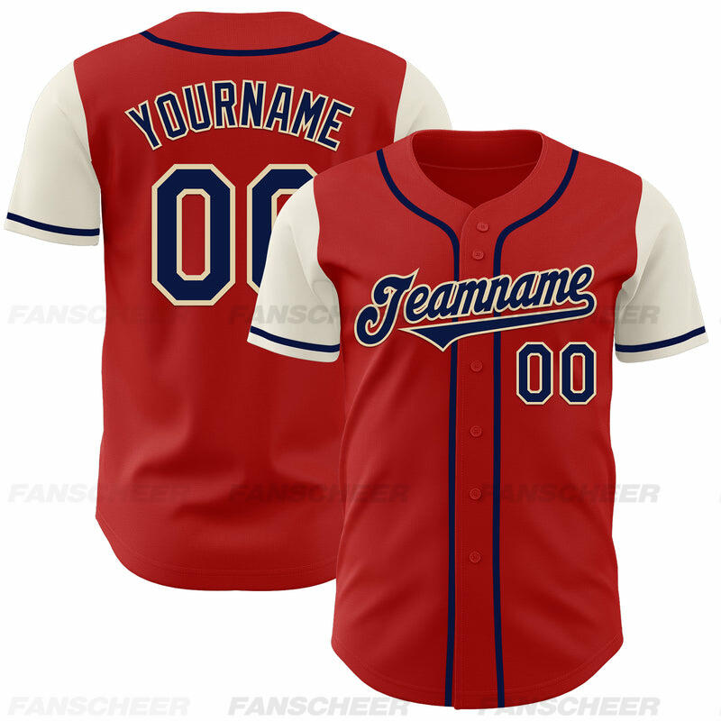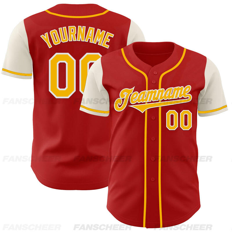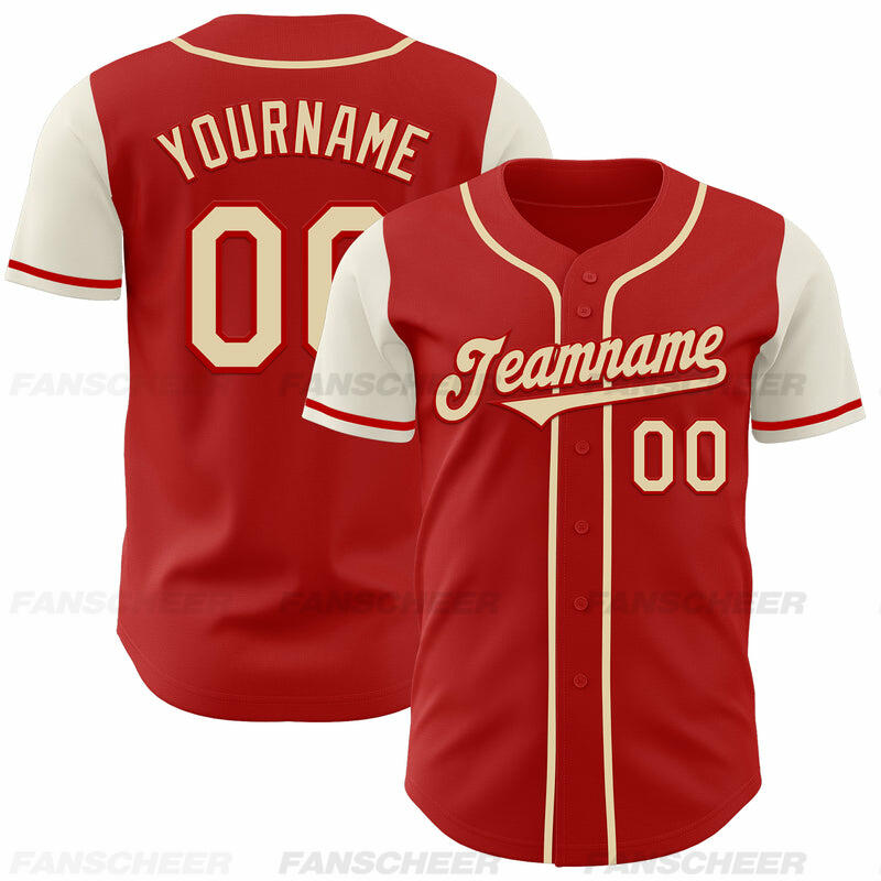 Custom Red Cream Authentic Two Tone Baseball Jersey with Personalized Number and Logo for Games Practices and Fan Events