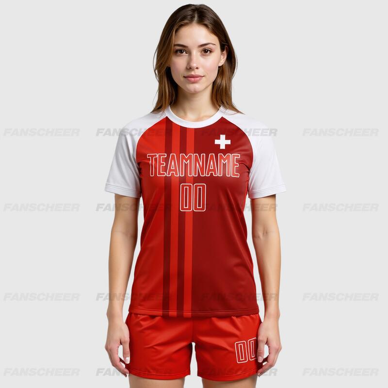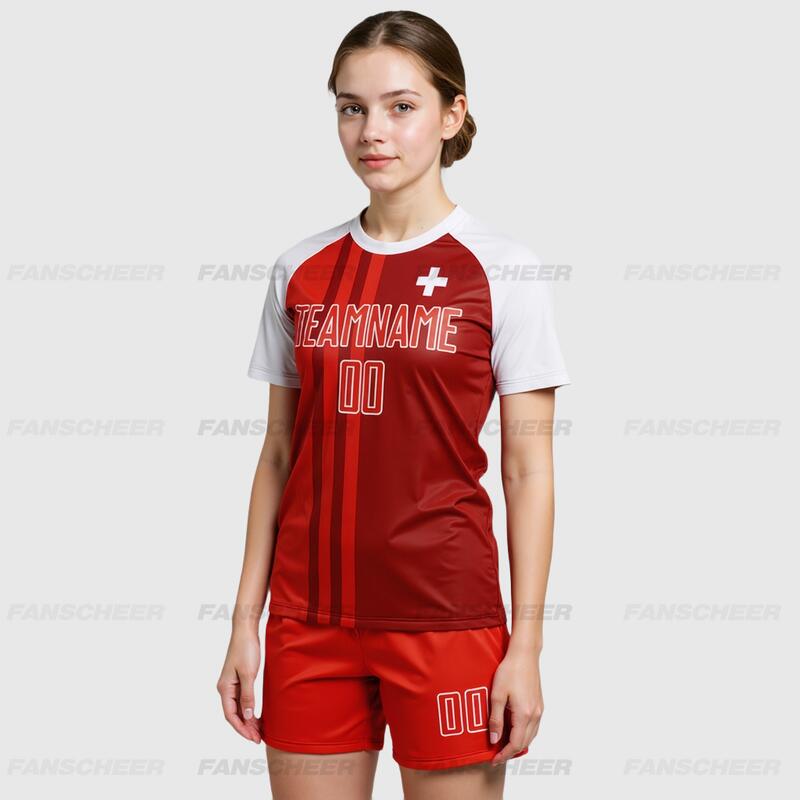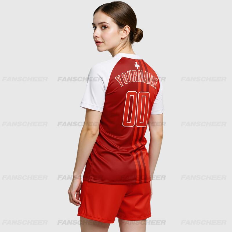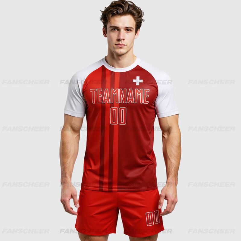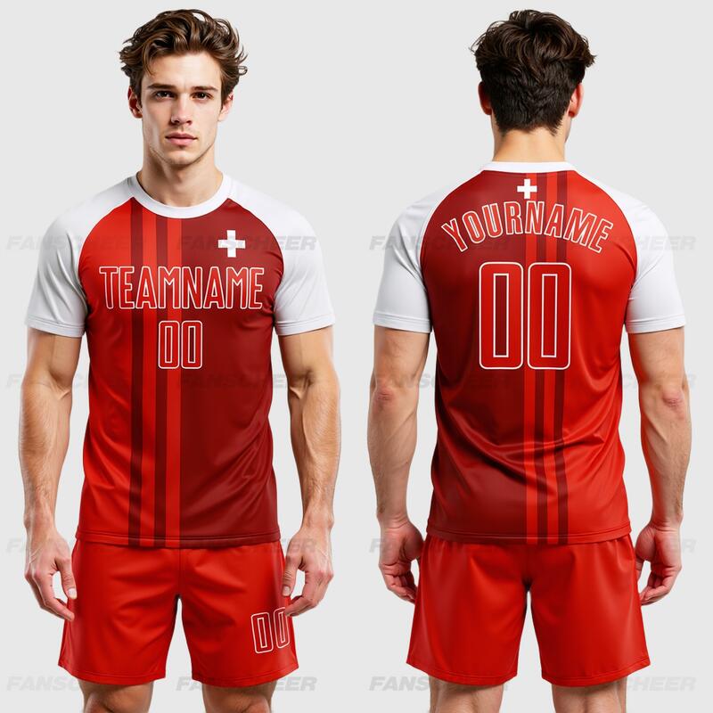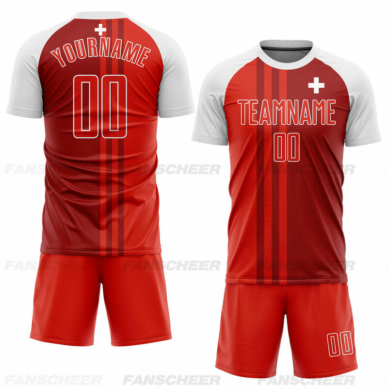 Custom Red Crimson-White Sublimation Swiss Flag Soccer Uniform Jersey