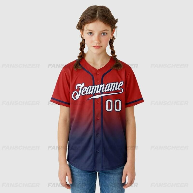 Custom Red Fade Fashion Baseball Jersey – Personalized Name, Number, Logo & Bulk Orders