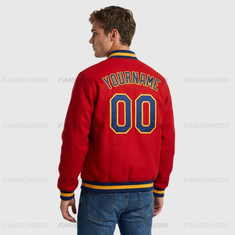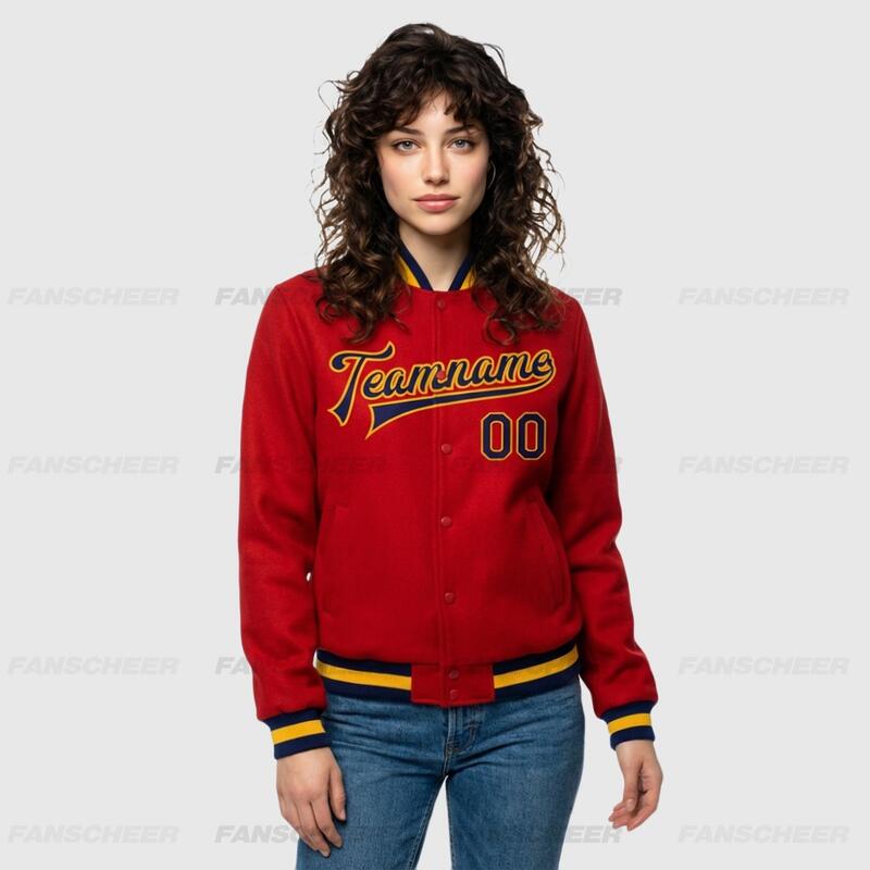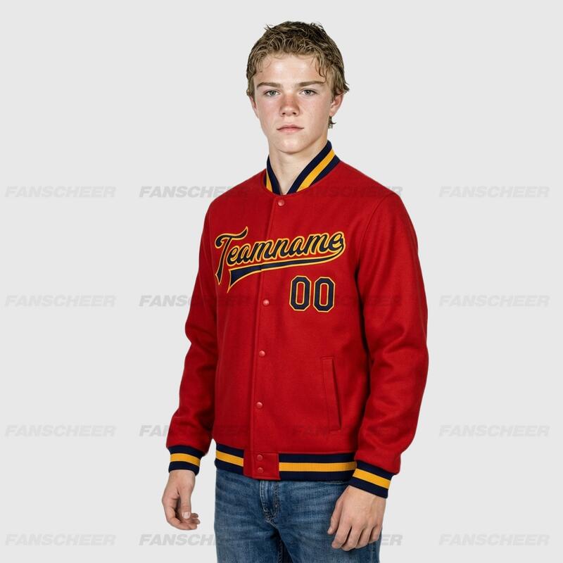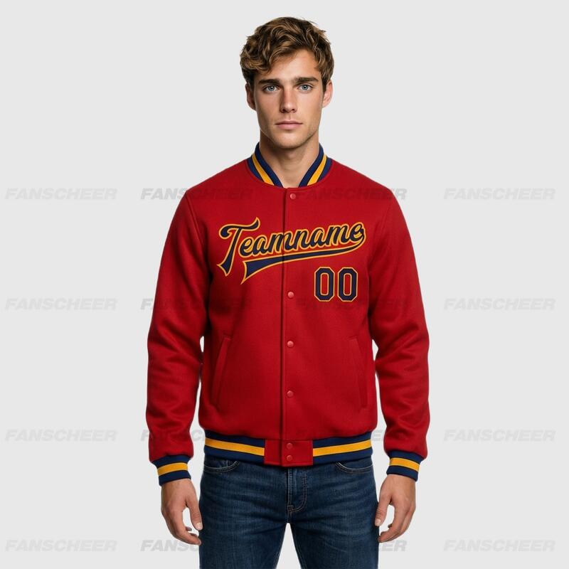 Custom Red Full-Snap Varsity Letterman Jacket Great for Suburban Spring Outings
