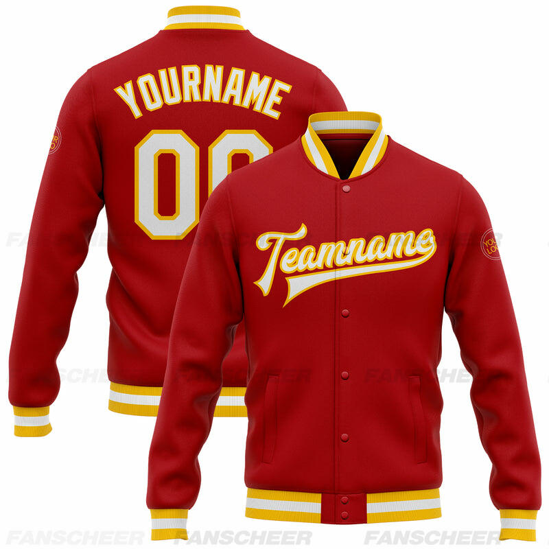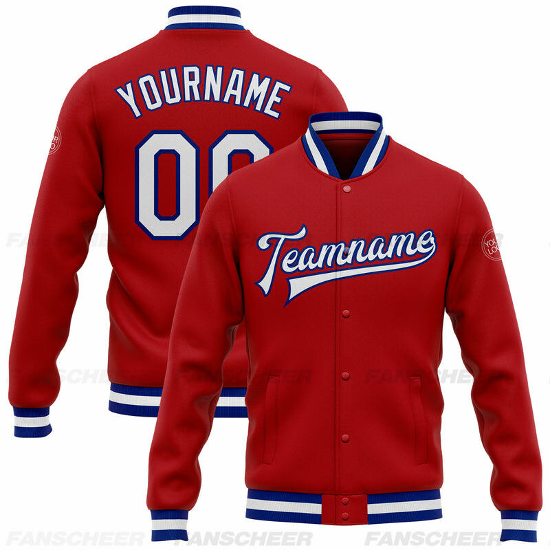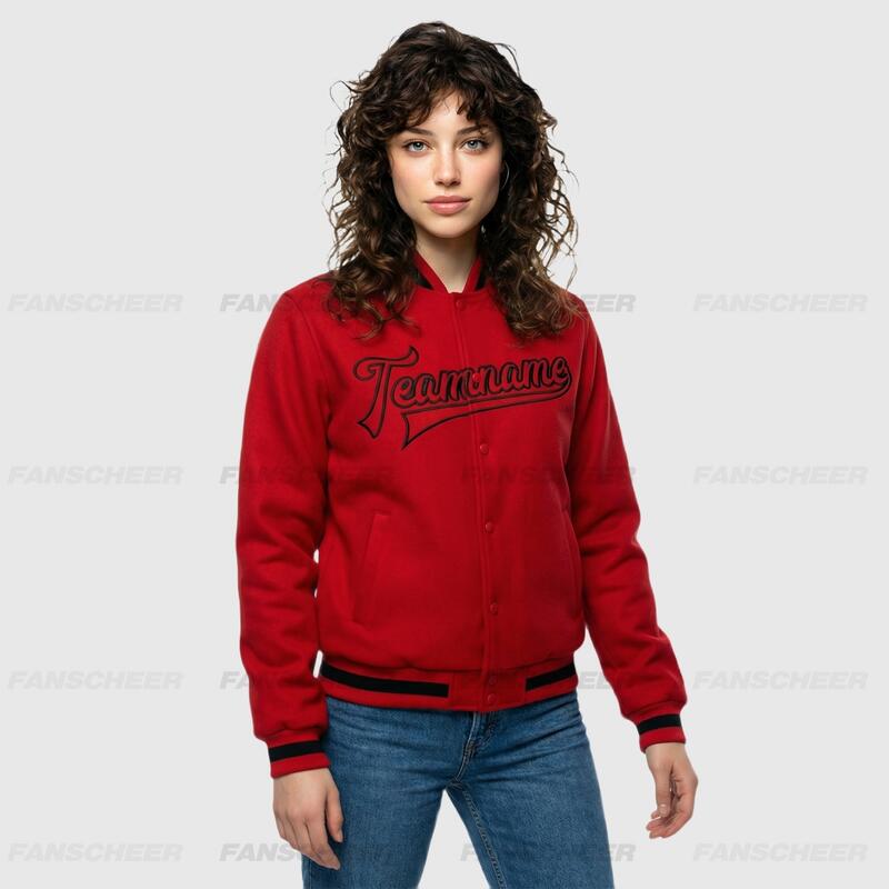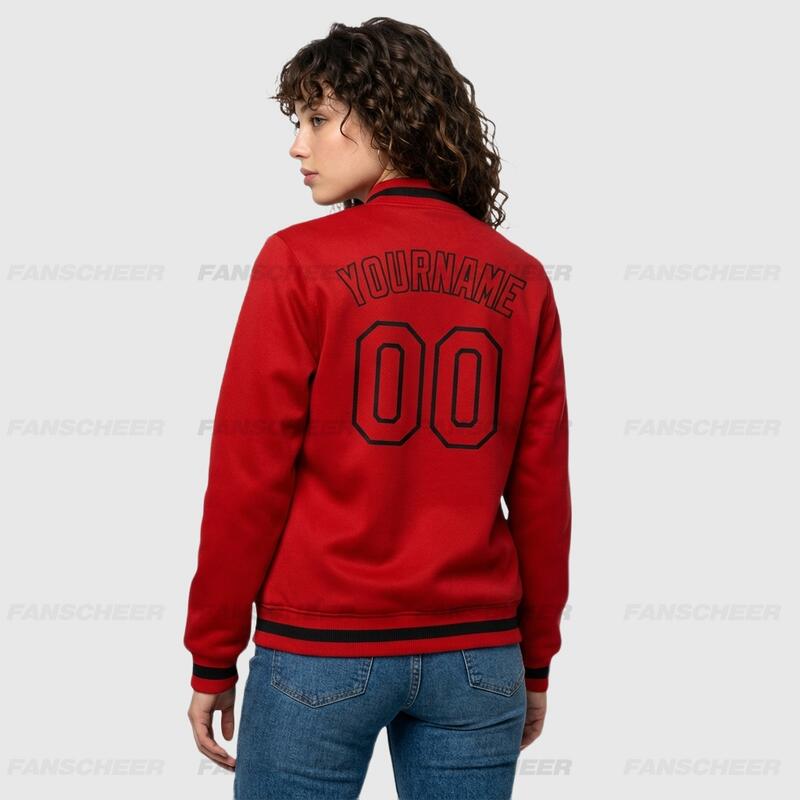 Custom Red Full-Snap Varsity Letterman Jacket Ideal for Everyday Casual Outings