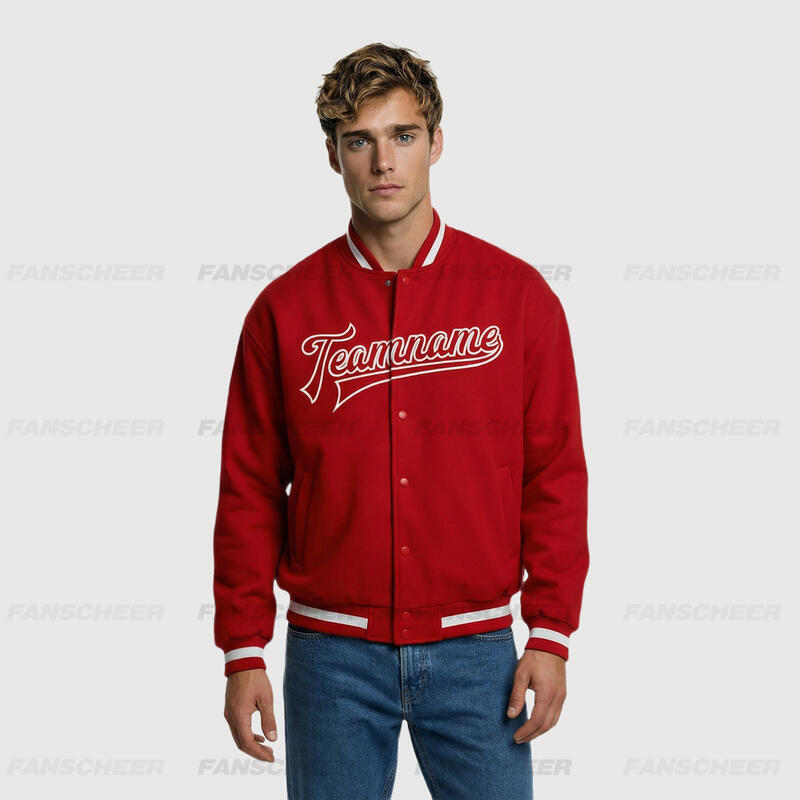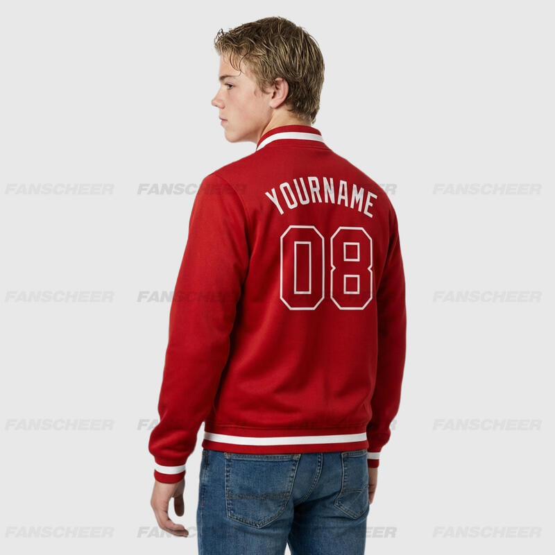 Custom Red Full-Snap Varsity Letterman Jacket Perfect for Weekend Errands