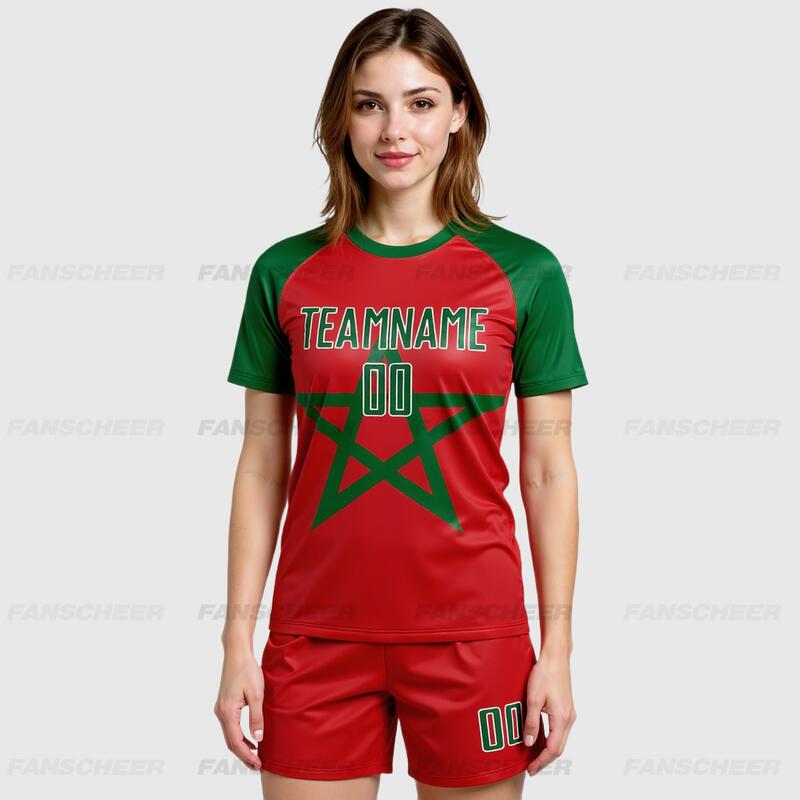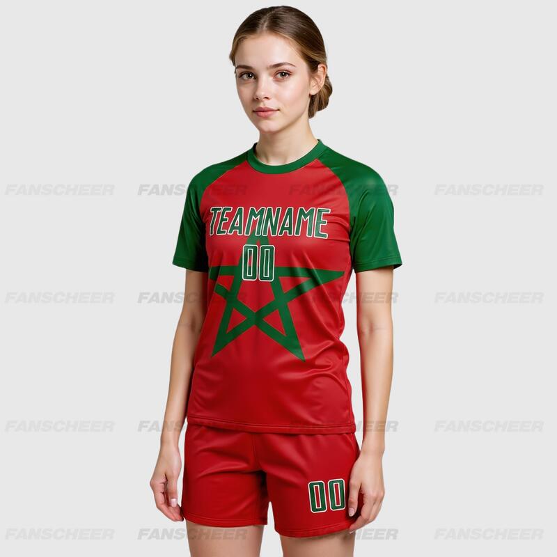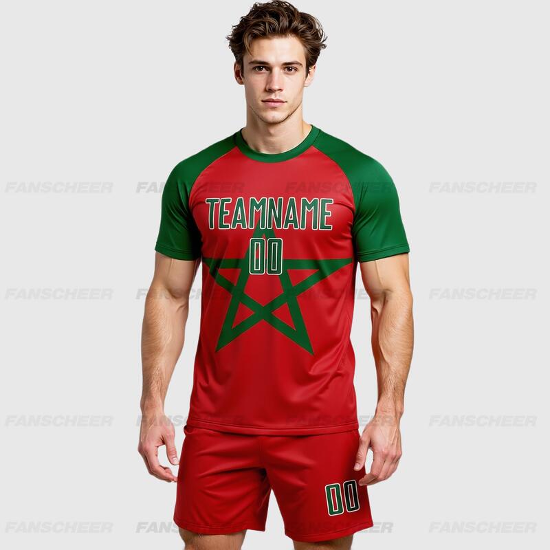 Custom Red Kelly Green-White Sublimation Moroccan Flag Soccer Uniform Jersey