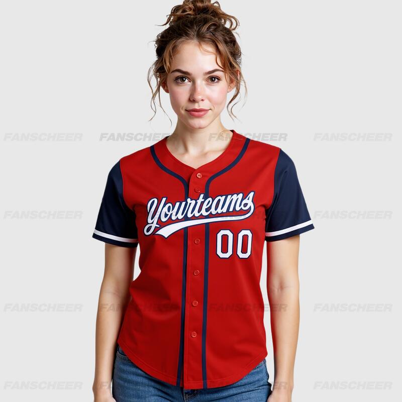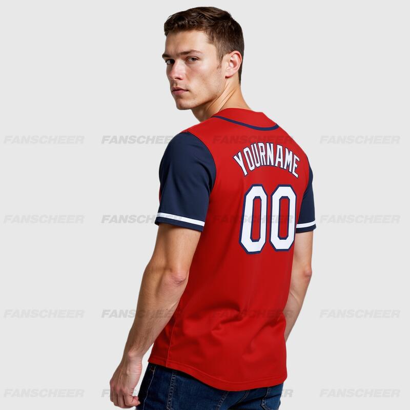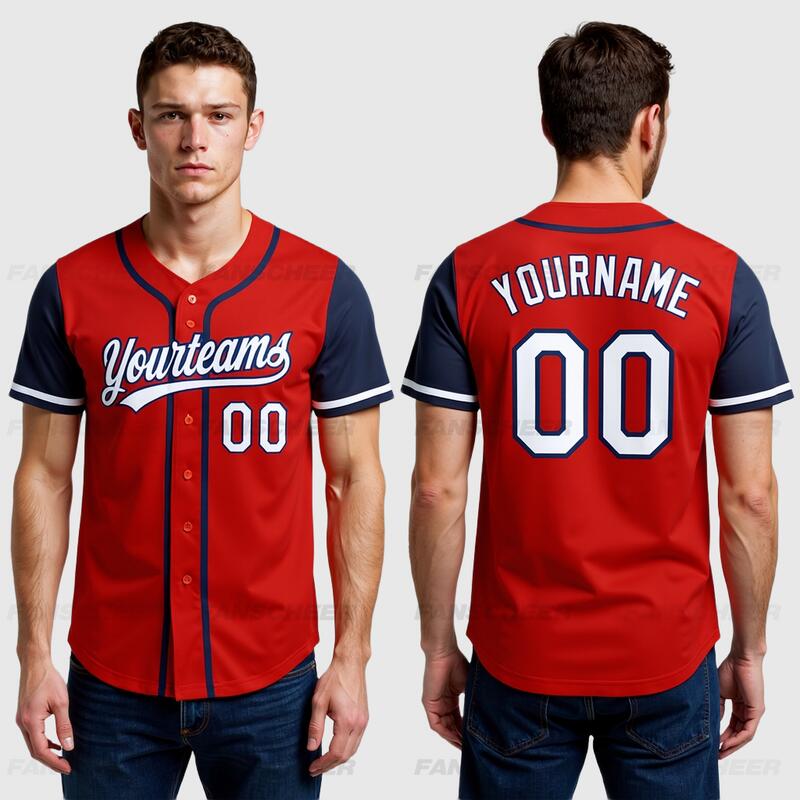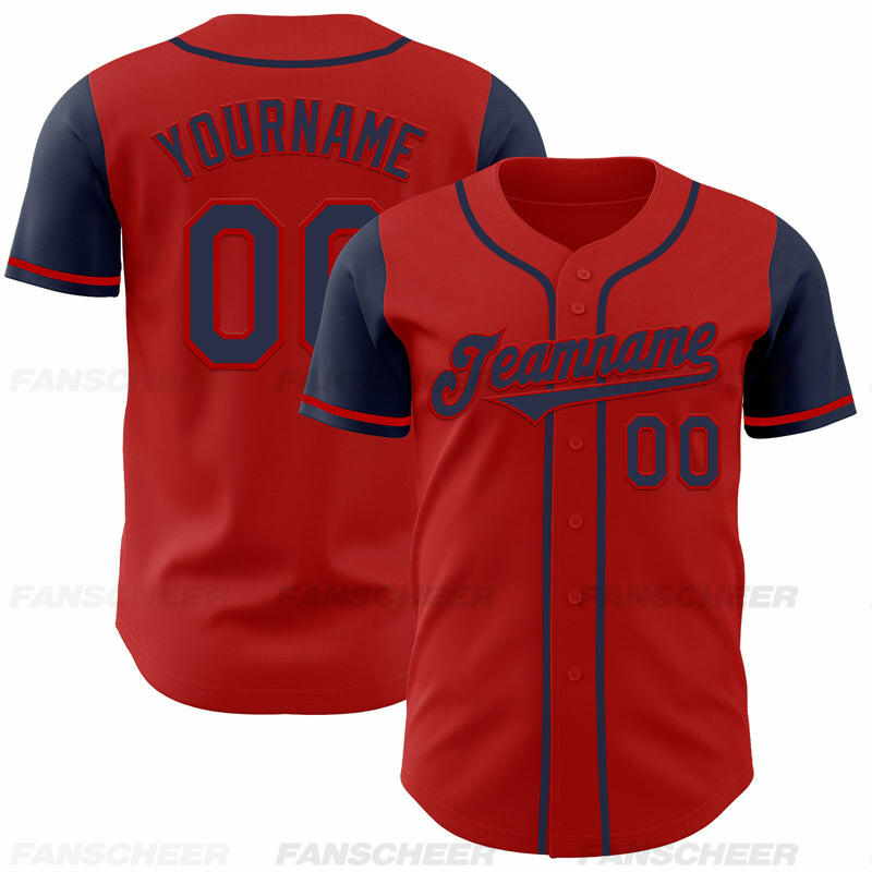 Custom Red Navy Authentic Two Tone Baseball Jersey with Personalized Number and Logo for Games Practices and Fan Events