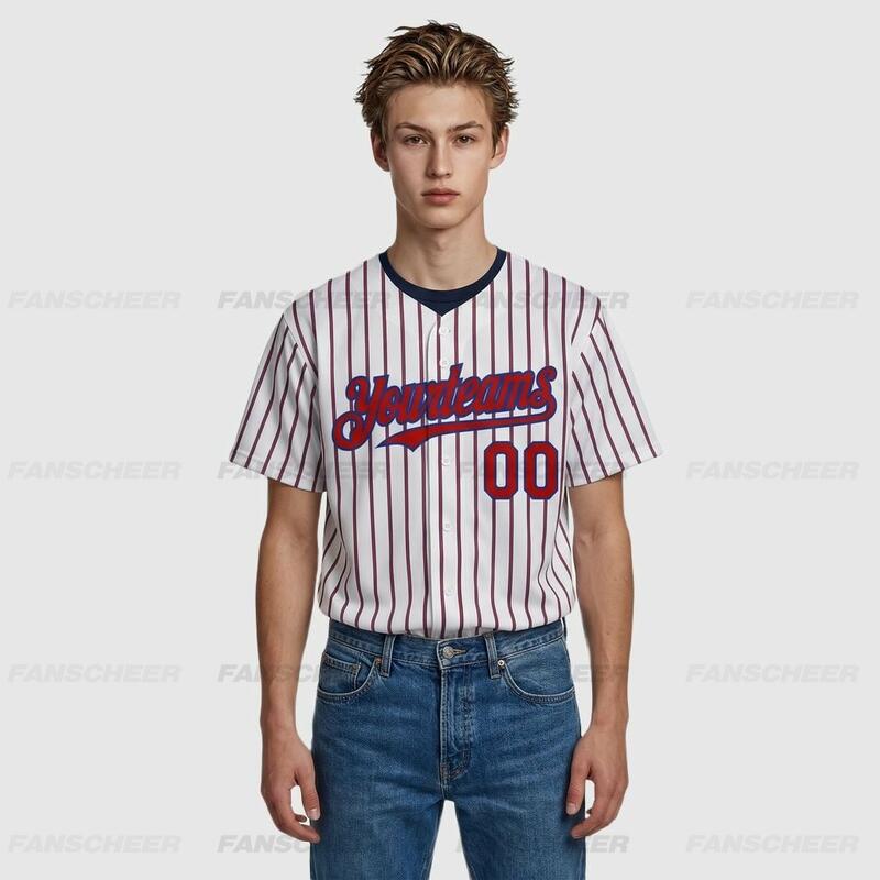Custom Red Pinstripe Baseball Jersey – Personalized & Bulk Orders