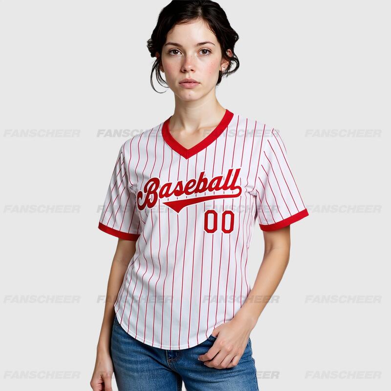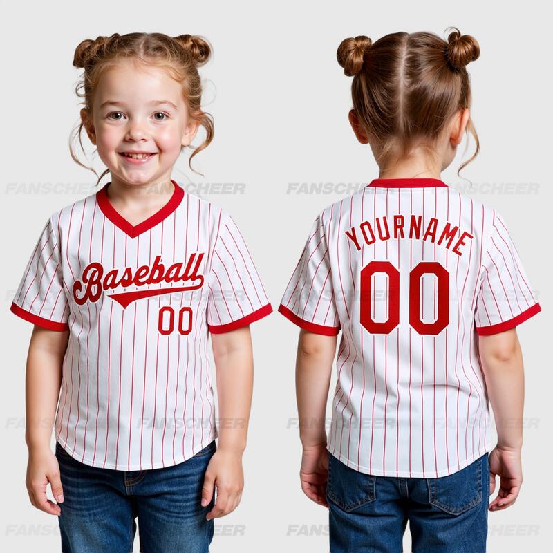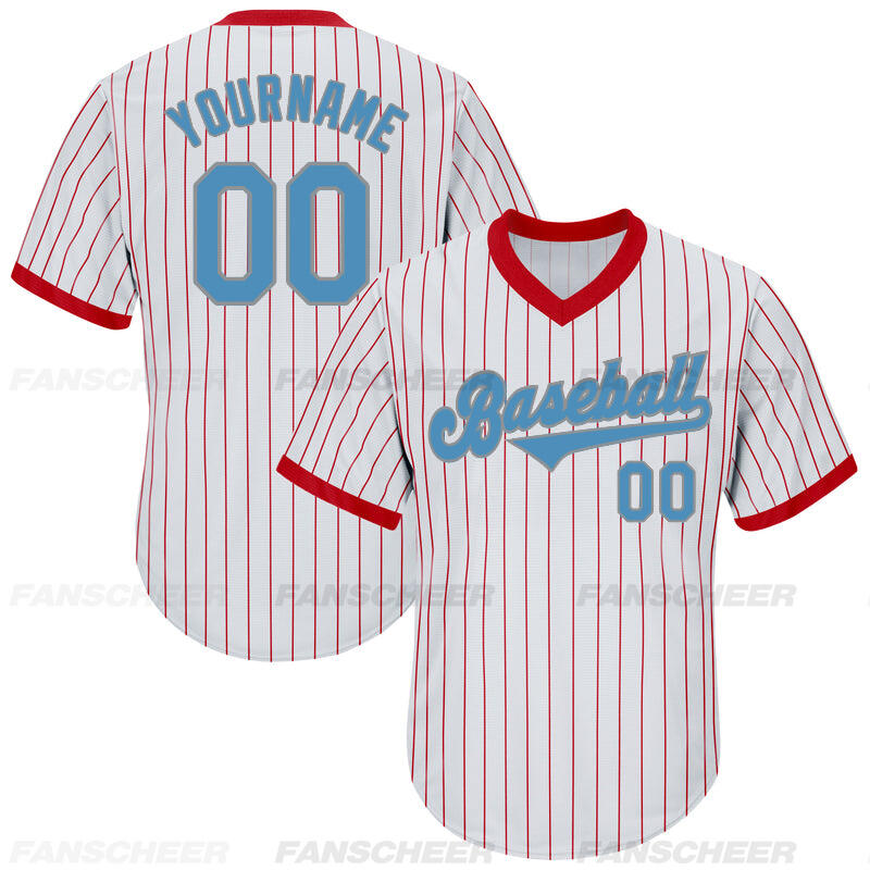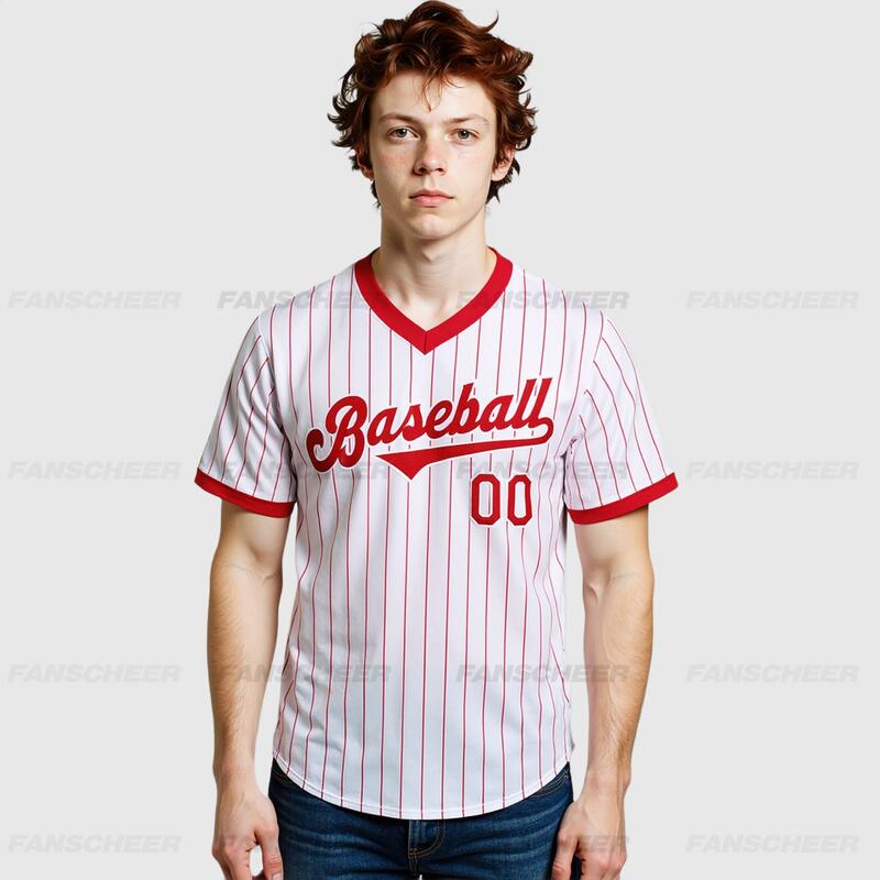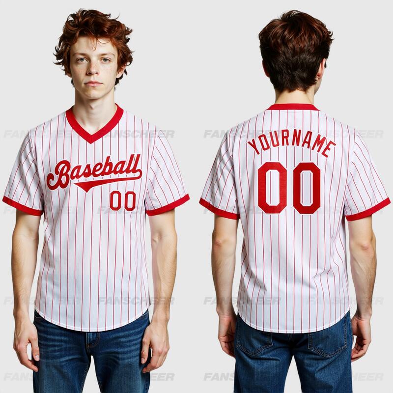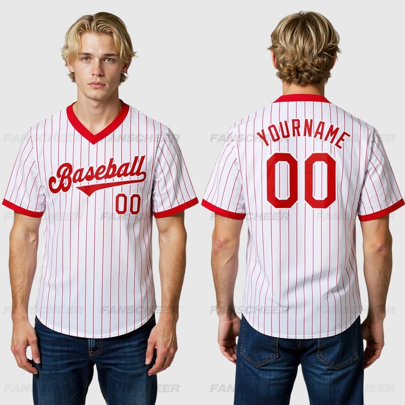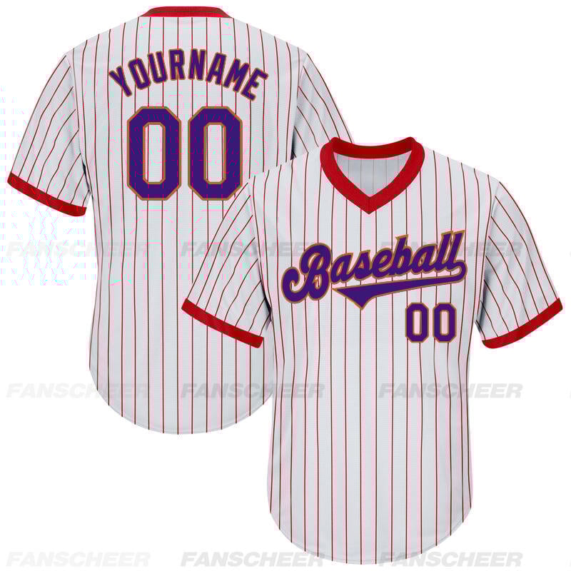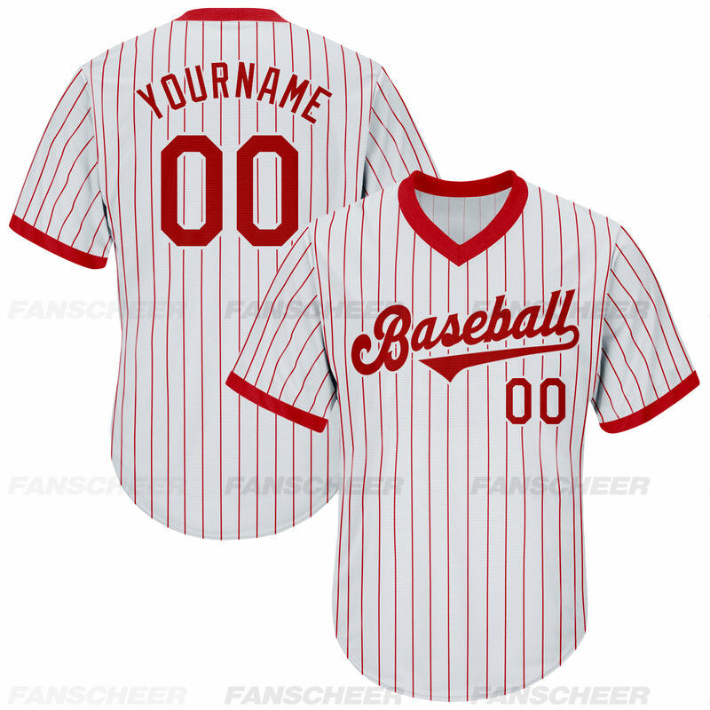 Custom Red Pinstripe Jersey with Personalized Number and Team Logo Perfect for Baseball Games Team Gatherings