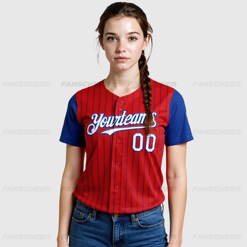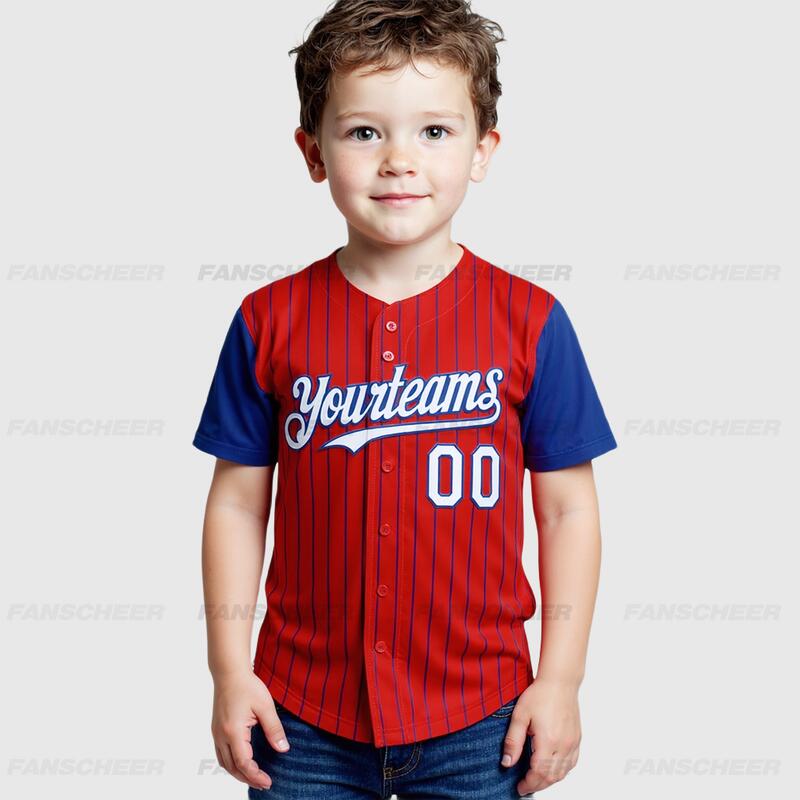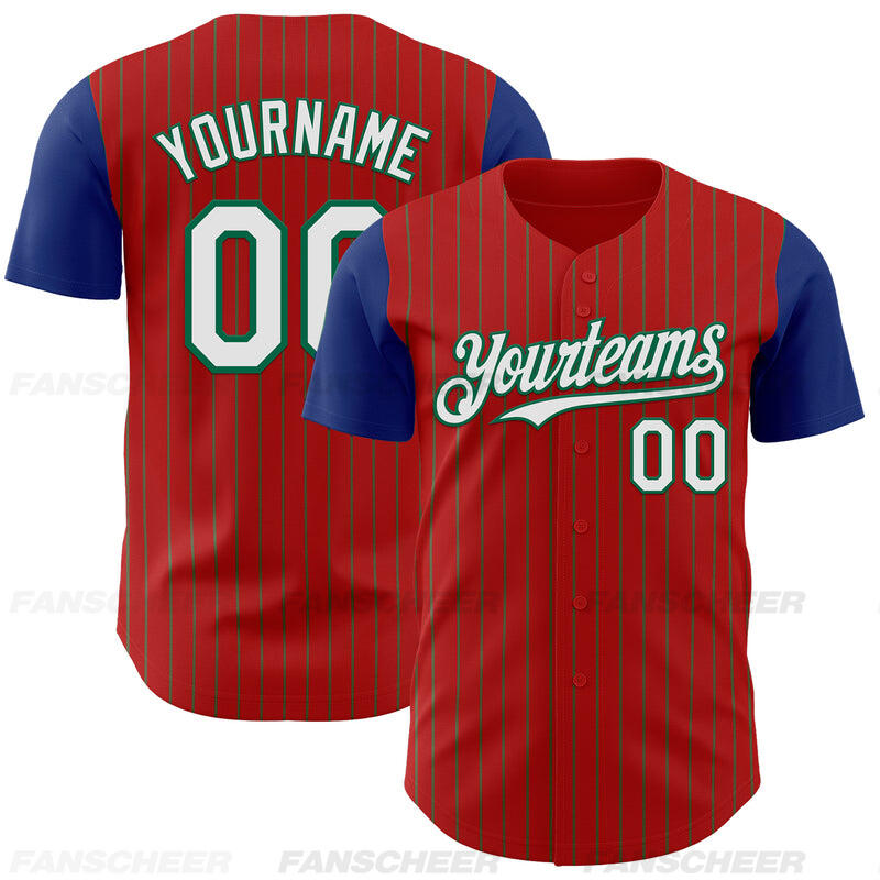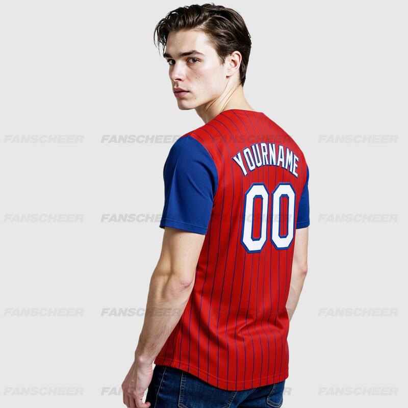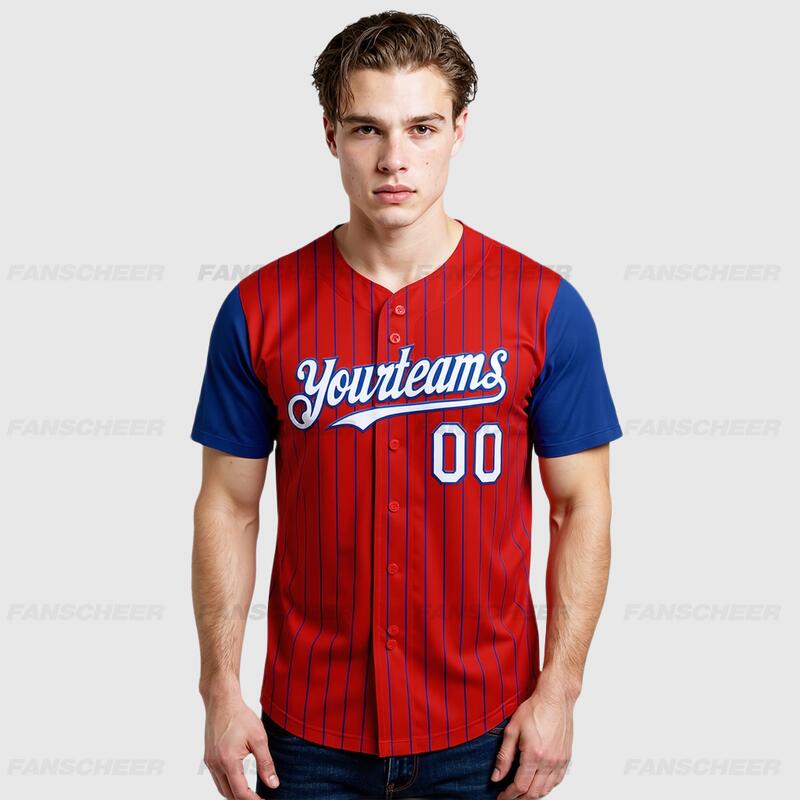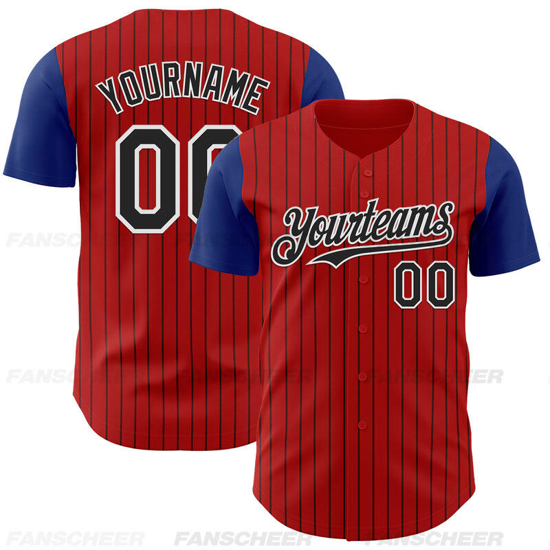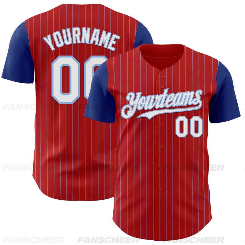 Custom Red Royal Authentic Pinstripe Two Tone Baseball Jersey with Personalized Number and Logo for Games Practices and Fan Events