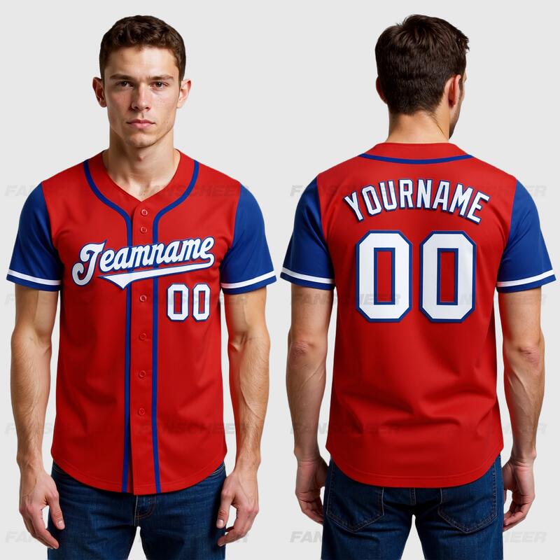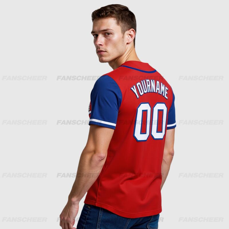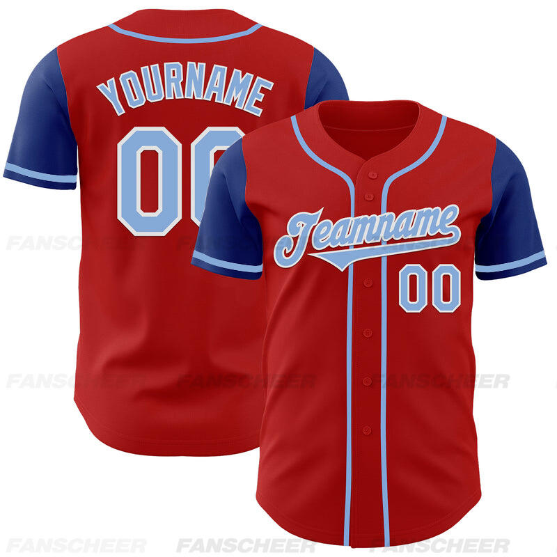 Custom Red Royal Authentic Two Tone Baseball Jersey with Personalized Number and Logo for Games Practices and Fan Events