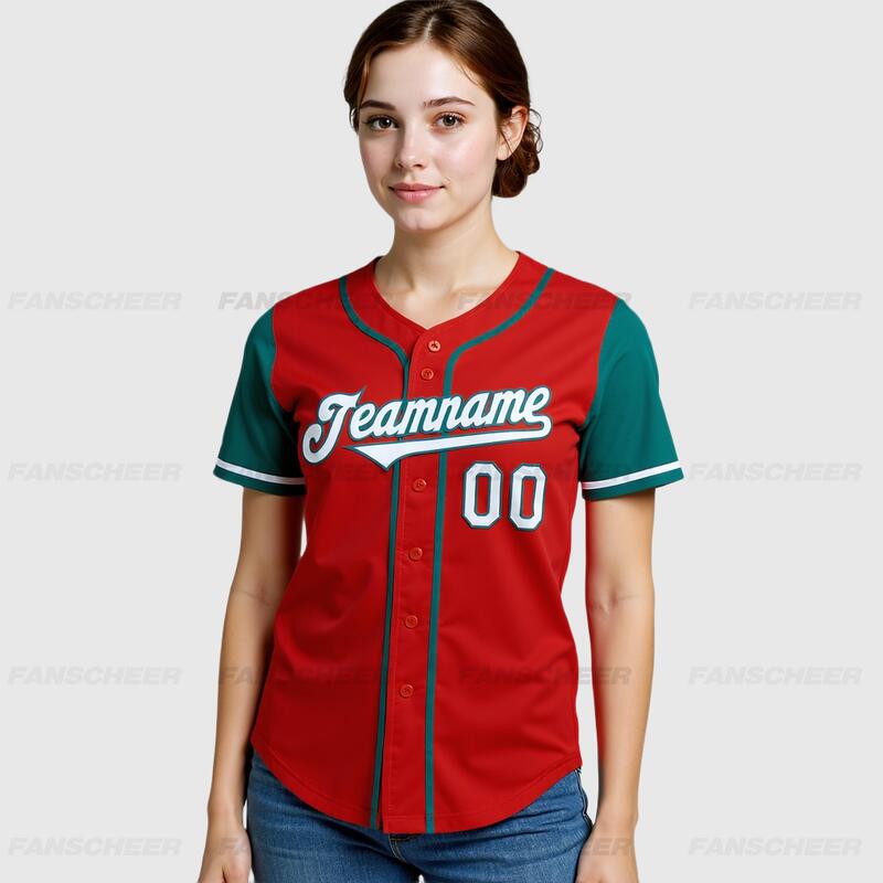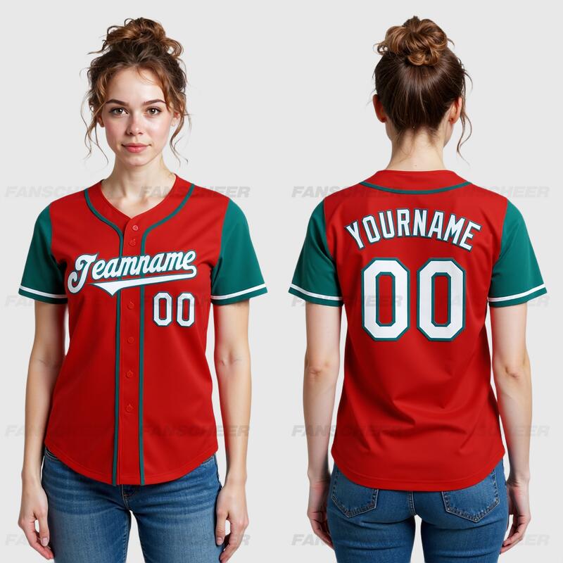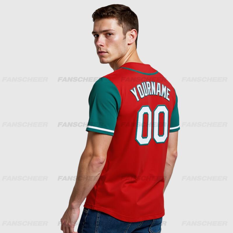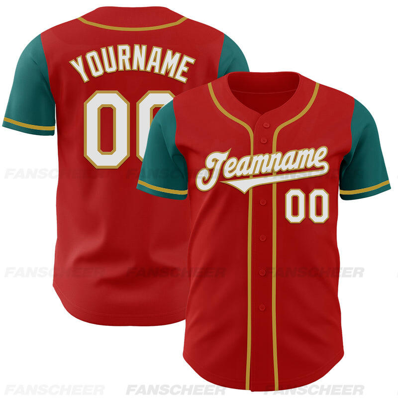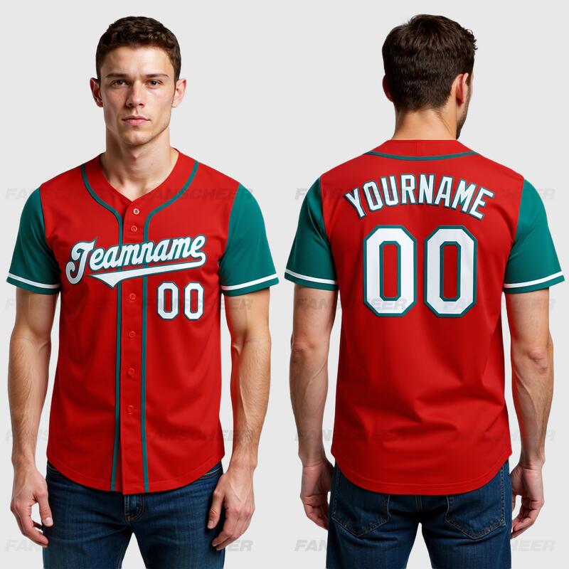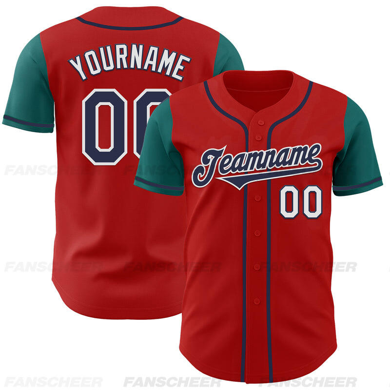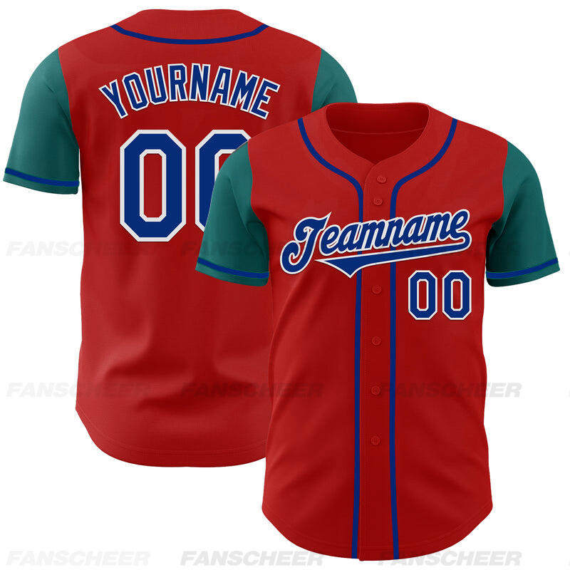 Custom Red Teal Authentic Two Tone Baseball Jersey with Personalized Number and Logo for Games Practices and Fan Events