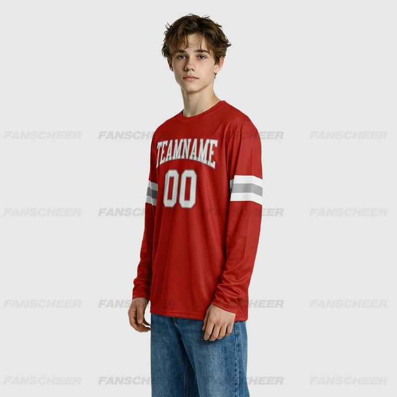 Custom Red-White Long Sleeve Performance T-Shirt