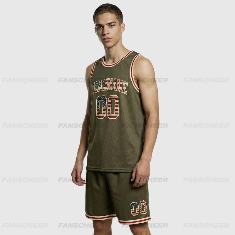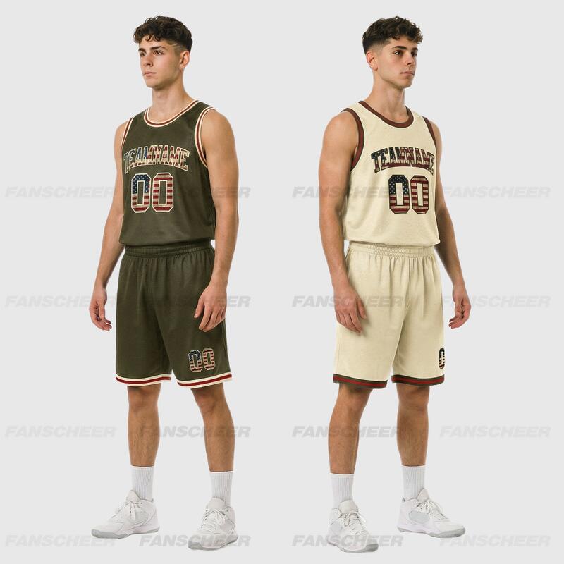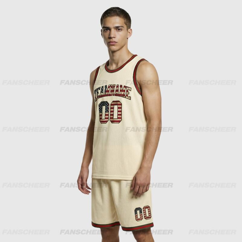 Custom Reversible Vintage USA Flag Basketball Suit Jersey Perfect for Rec Leagues & Outdoor Matches
