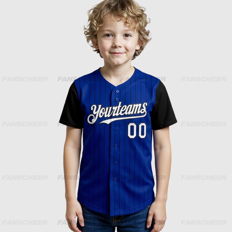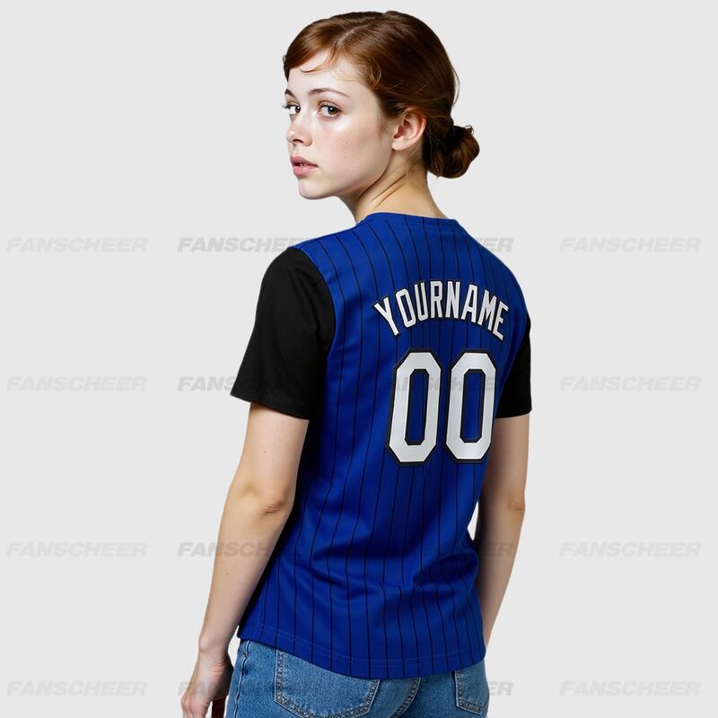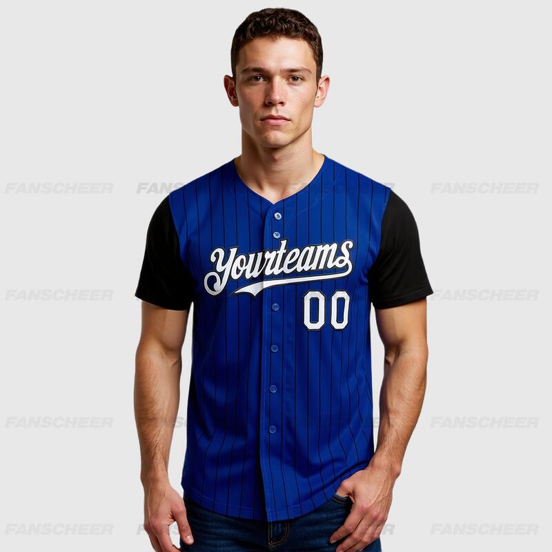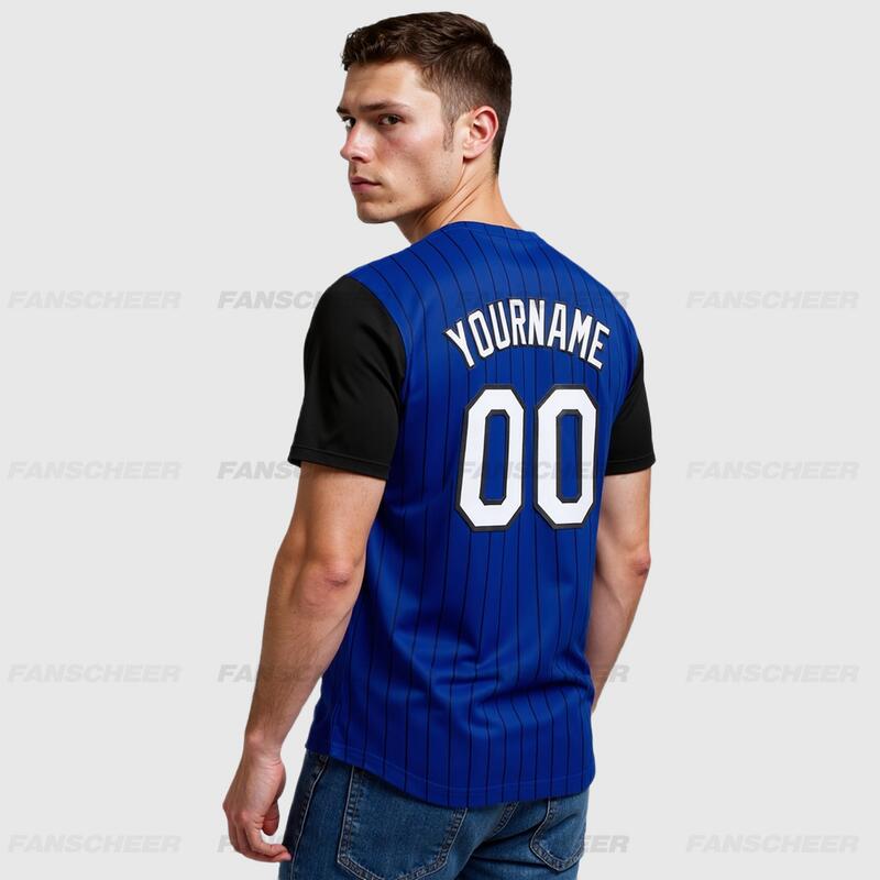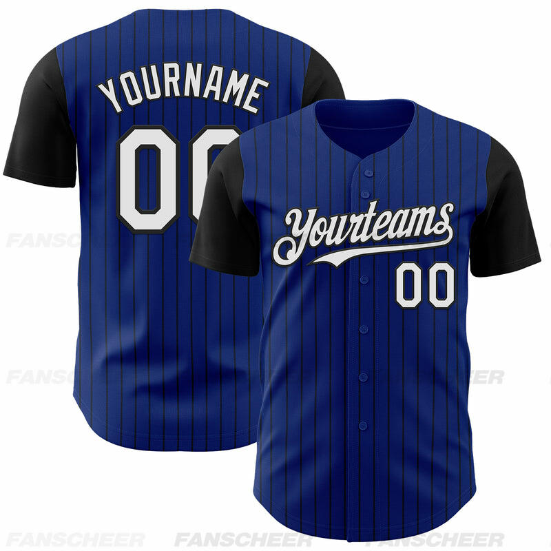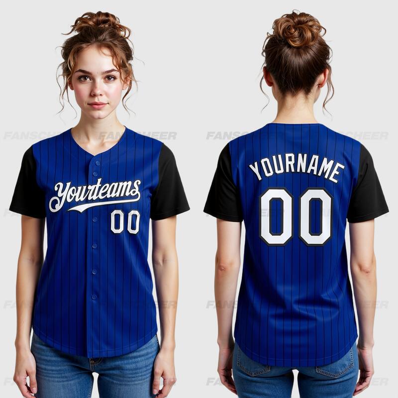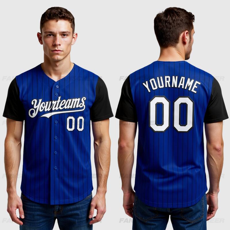 Custom Royal Black Two Tone Pinstripe Baseball Jersey Personalized Logo and Number Ideal for Baseball Games Fan Gatherings and School Events