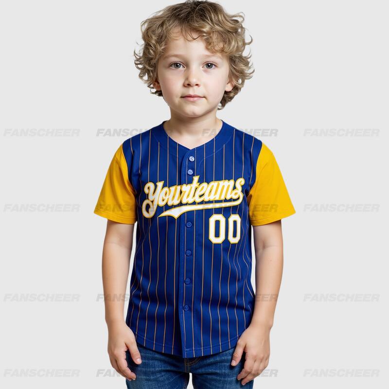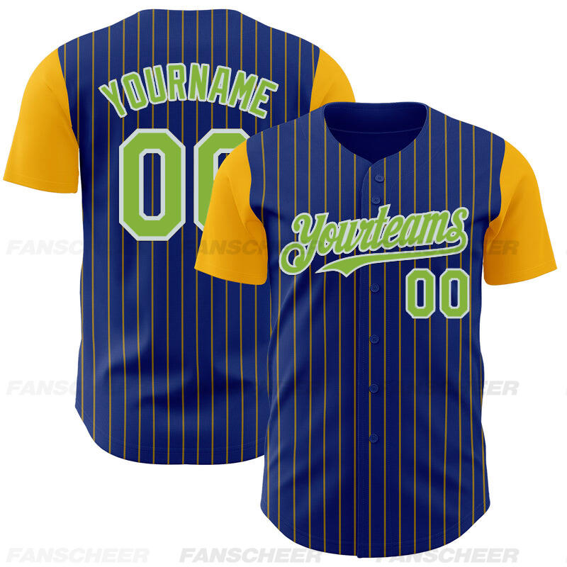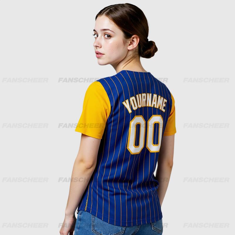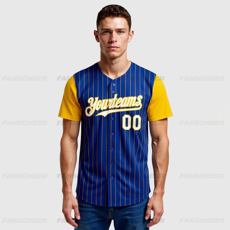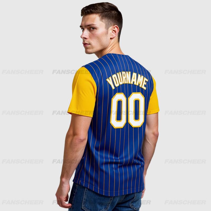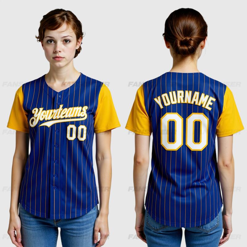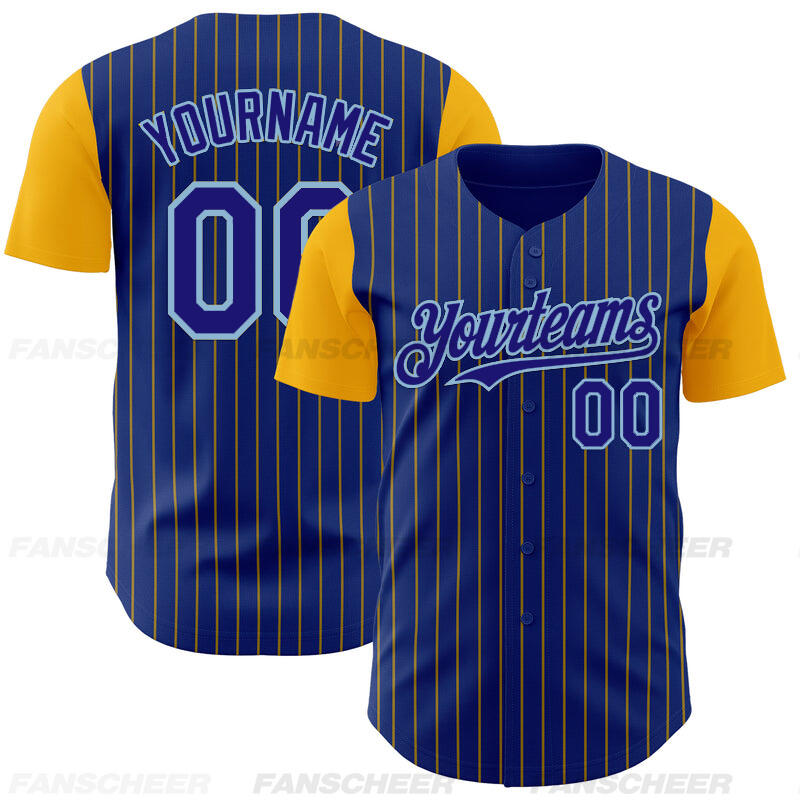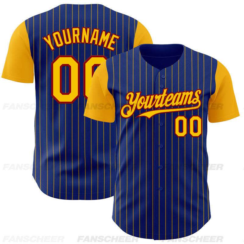 Custom Royal Gold Two Tone Pinstripe Baseball Jersey Personalized Logo and Number Ideal for Baseball Games Fan Gatherings and School Events