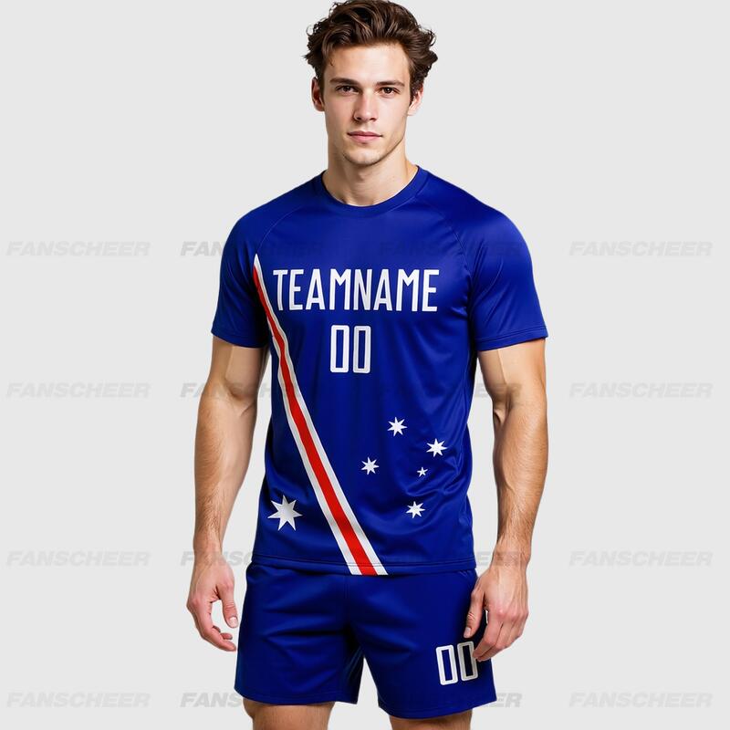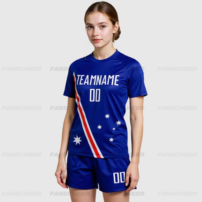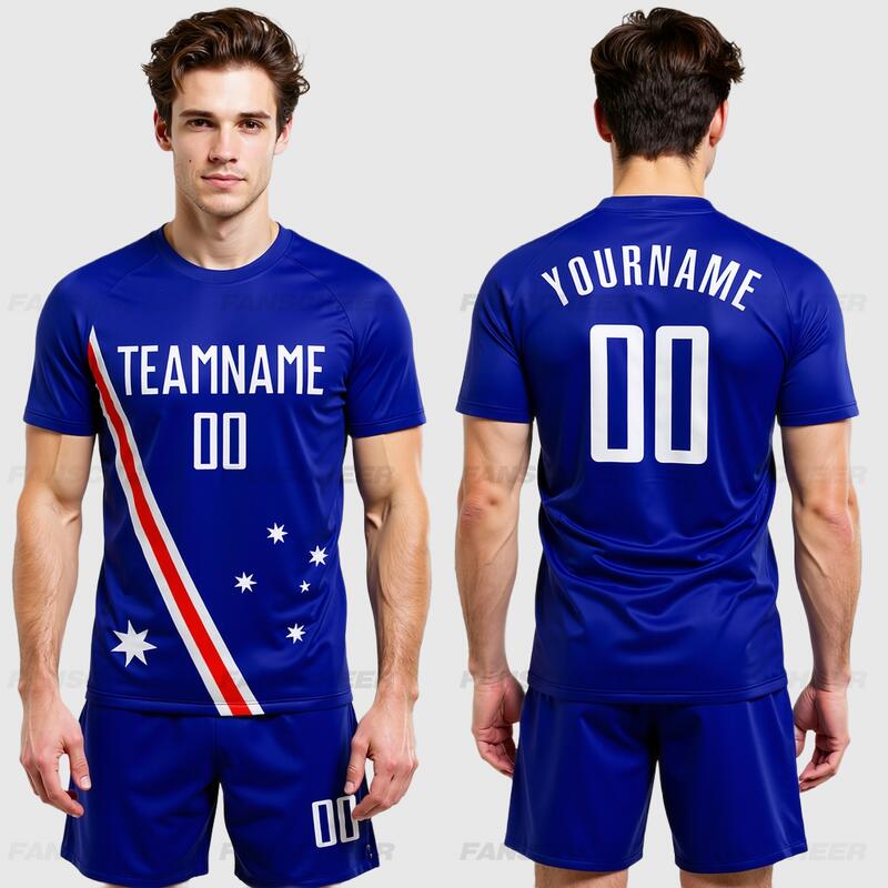 Custom Royal White-Red Sublimation Australian Flag Soccer Uniform Jersey