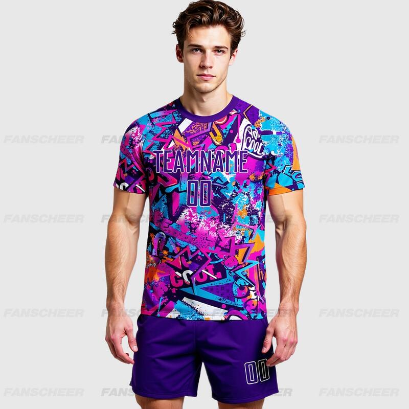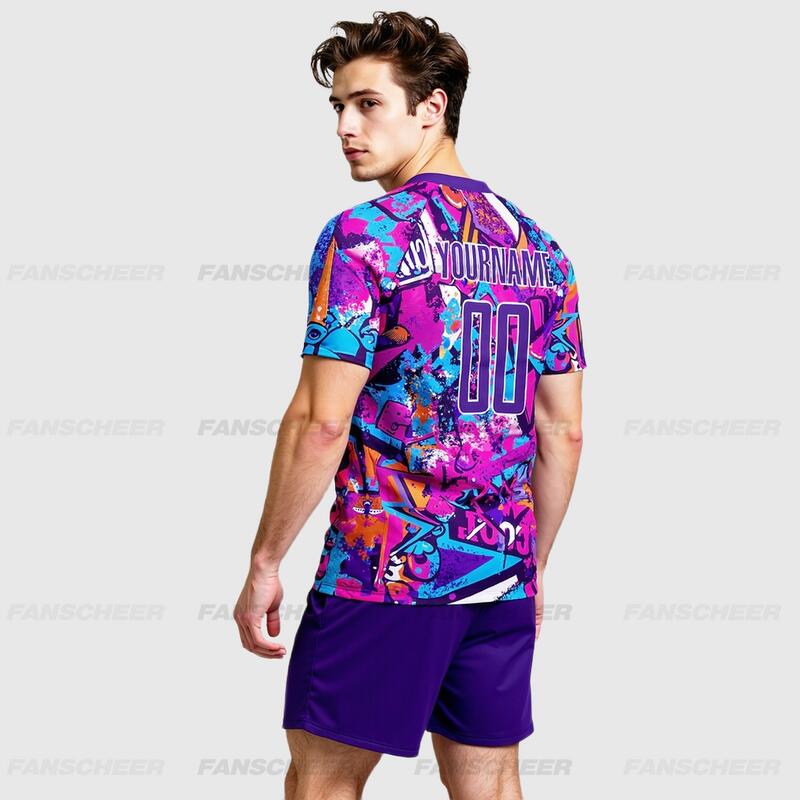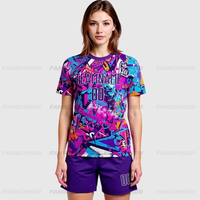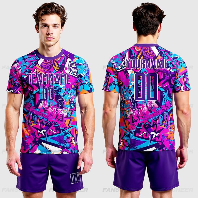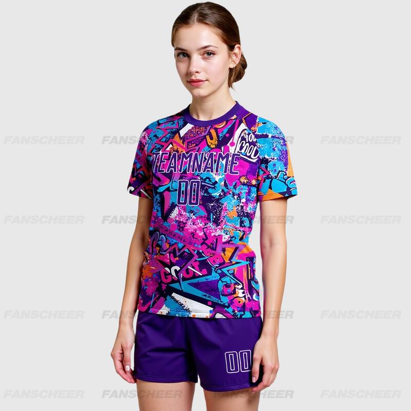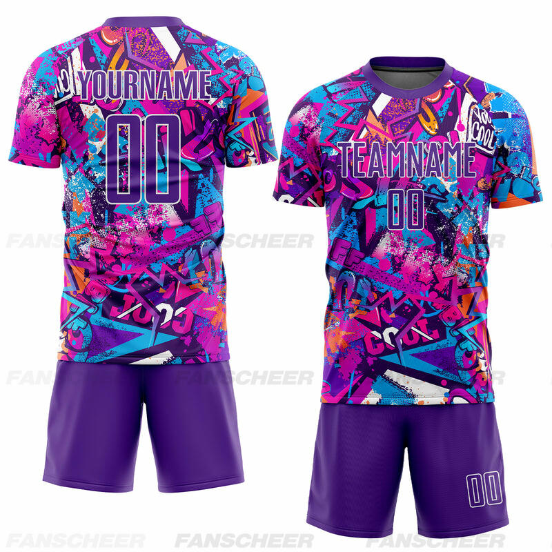 Custom Soccer Uniform Jersey Graffiti Pattern Purple-White Sublimation