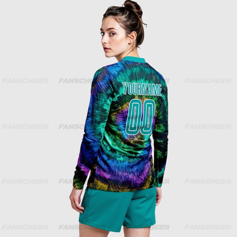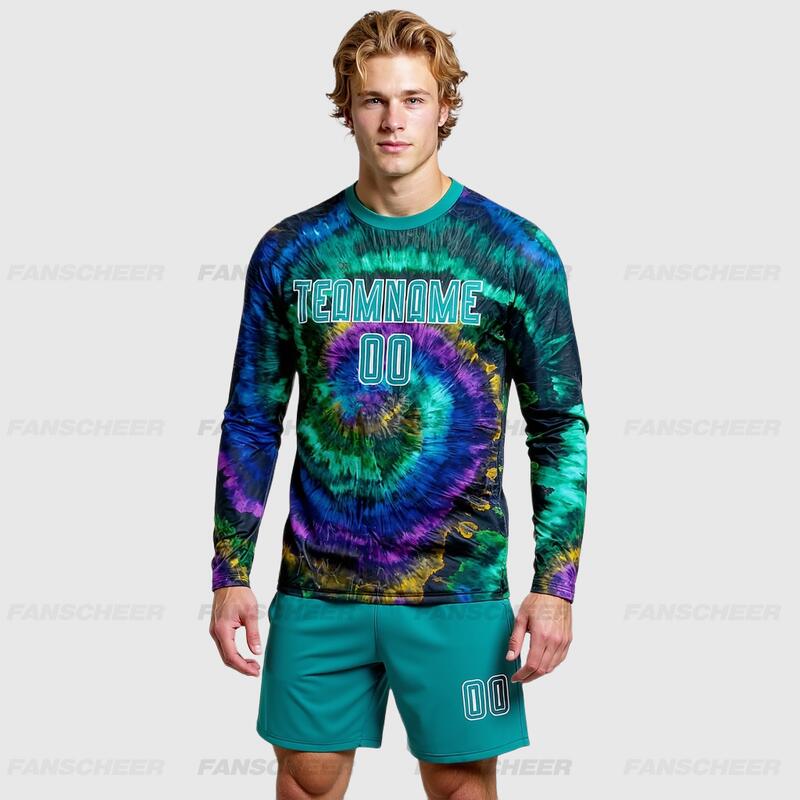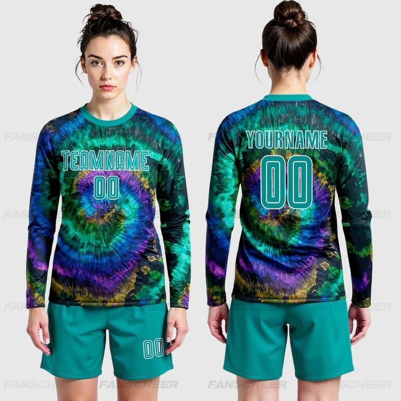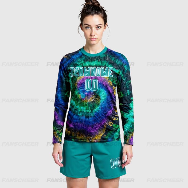 Custom Soccer Uniform Jersey Long Sleeve Tie Dye Teal-White Sublimation