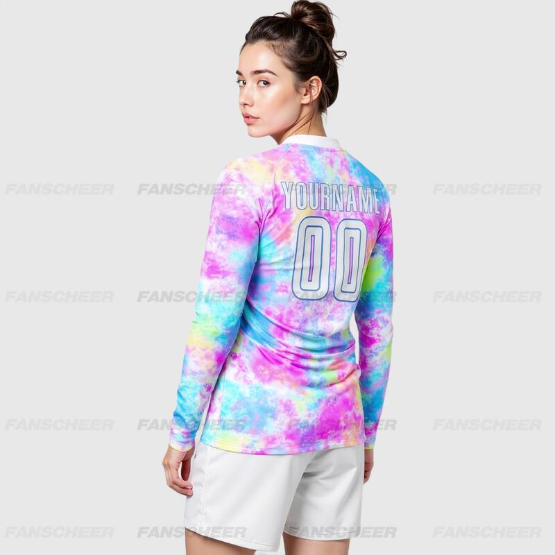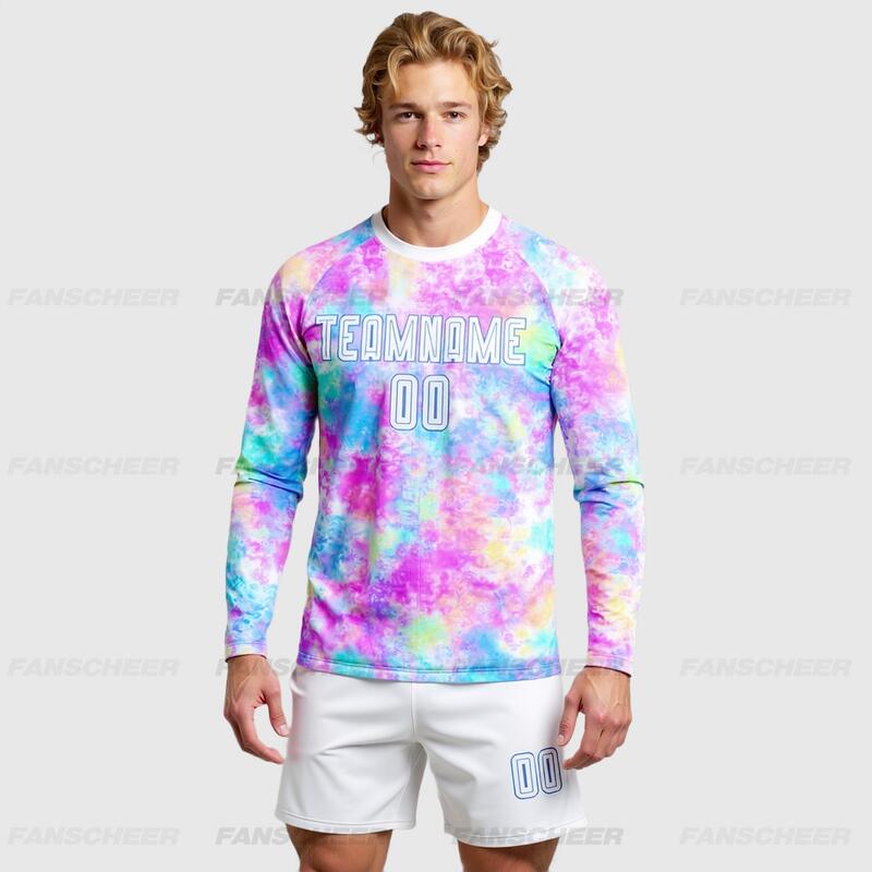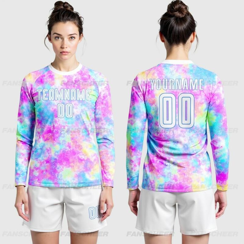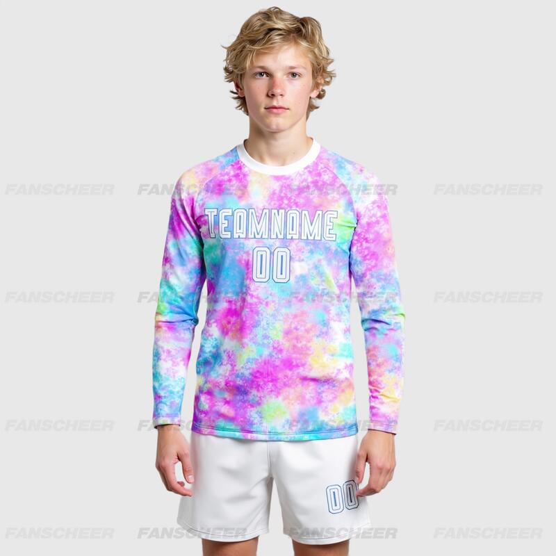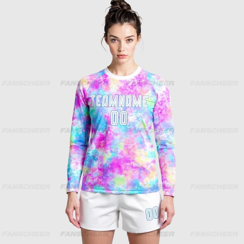 Custom Soccer Uniform Jersey Long Sleeve Tie Dye White-Light Blue Sublimation