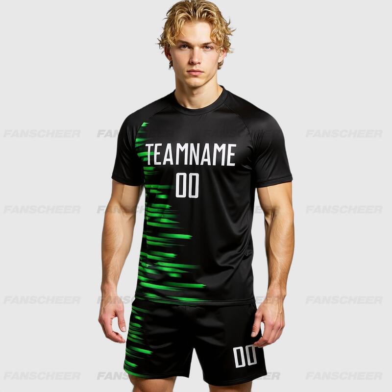 We prioritize performance with high-quality functional fabric. It's soft and skin-friendly for unrestricted movement, highly breathable to wick away sweat during intense matches, and durable enough to withstand passes, tackles, and grass friction – lasting through every game.