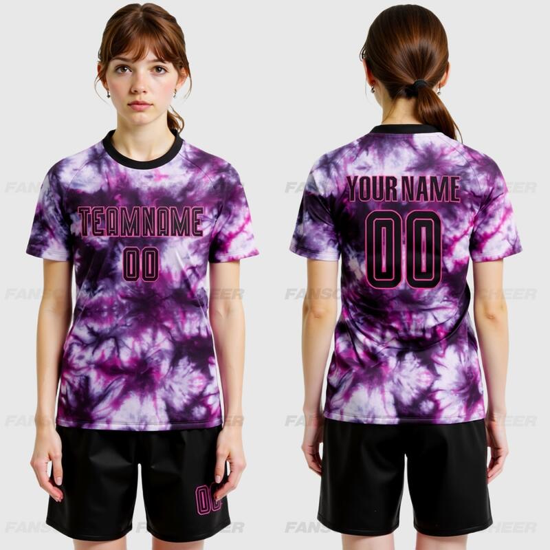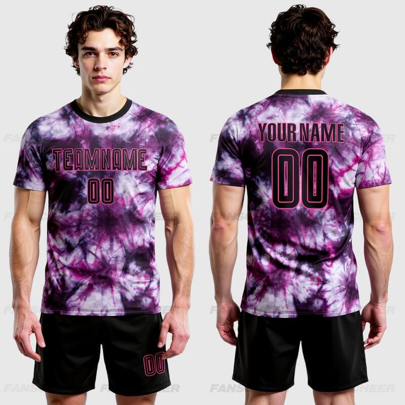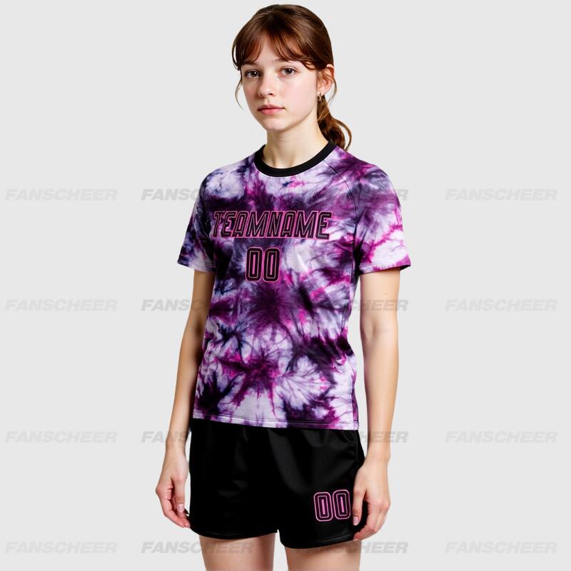 Custom Soccer Uniform Jersey Tie Dye Black-Pink Sublimation