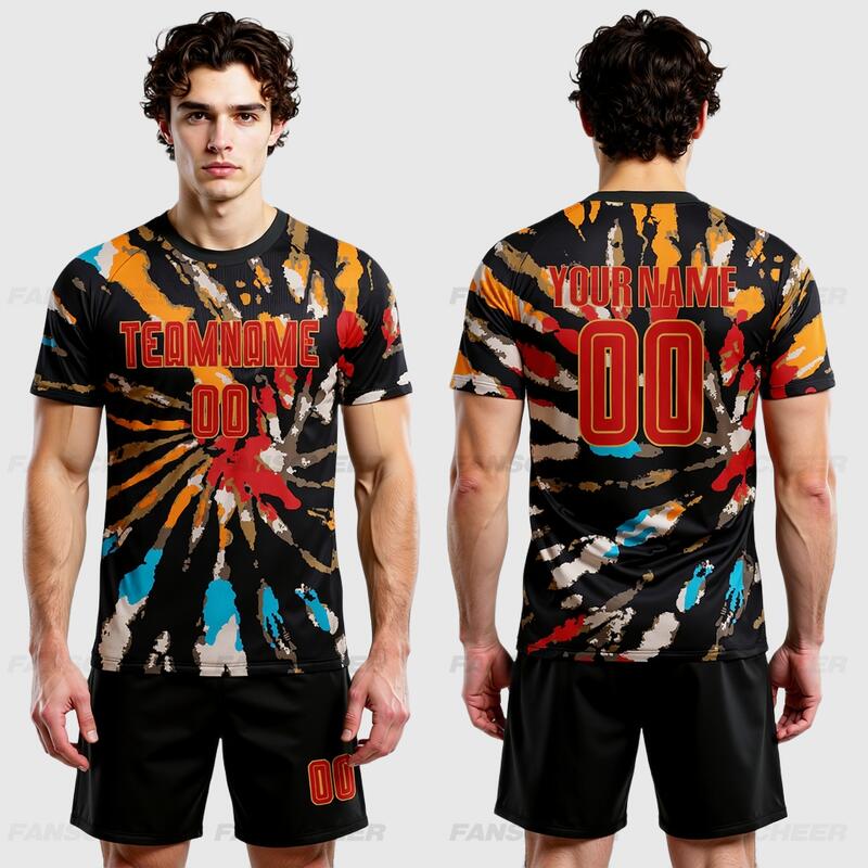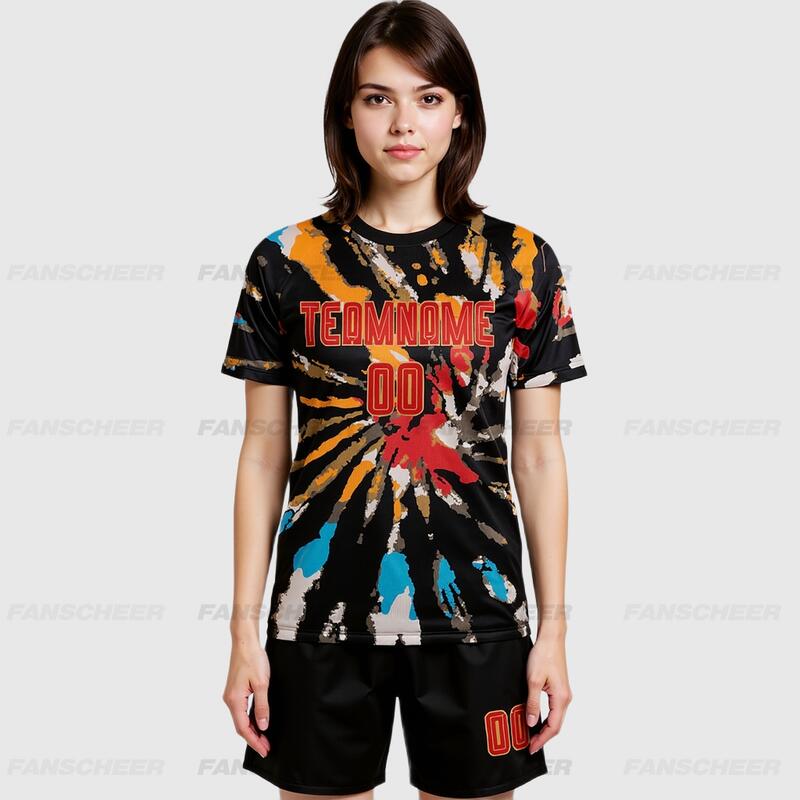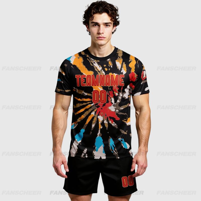 Custom Soccer Uniform Jersey Tie Dye Red-Old Gold Sublimation