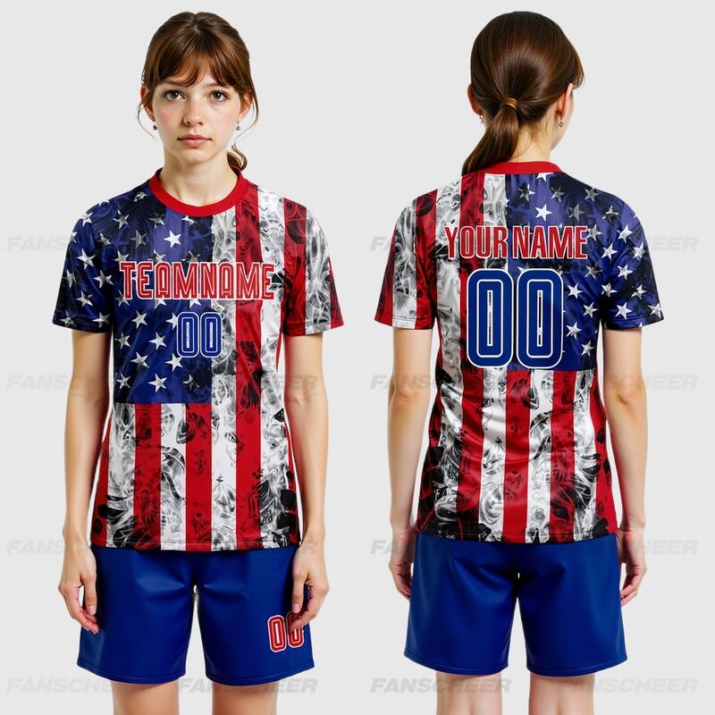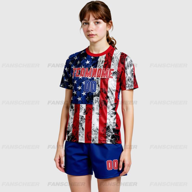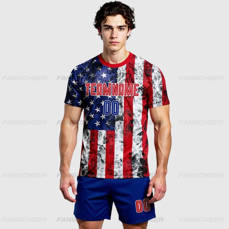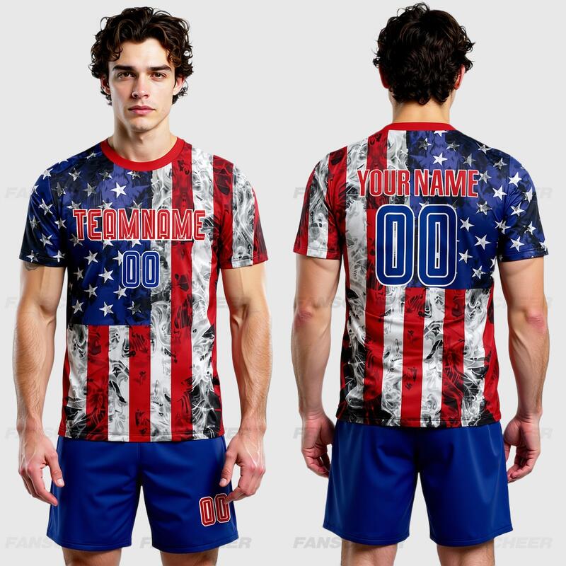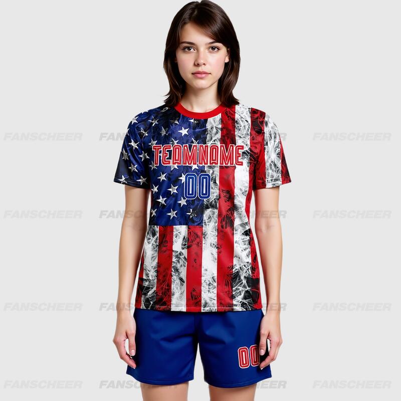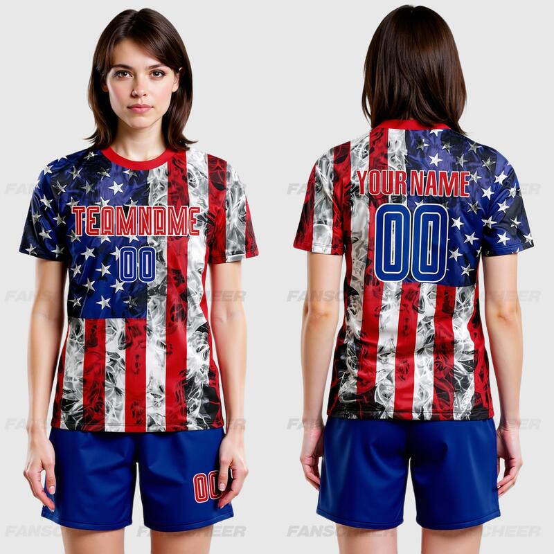 Custom Soccer Uniform Jersey White Royal-Red American Flag Fashion Sublimation
