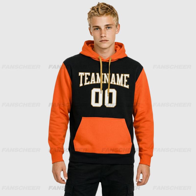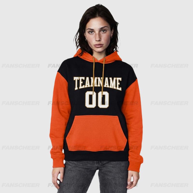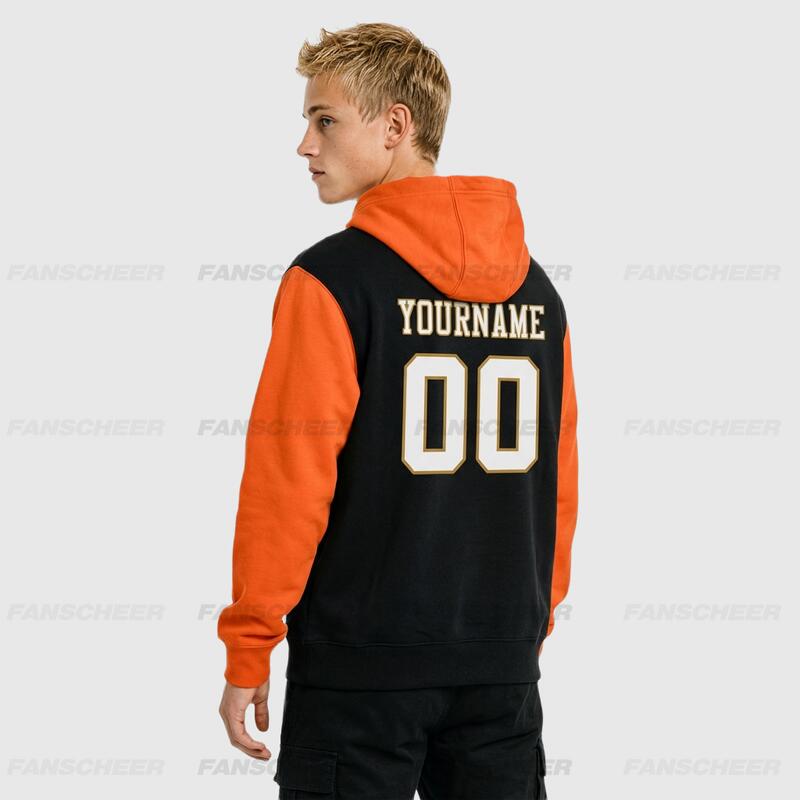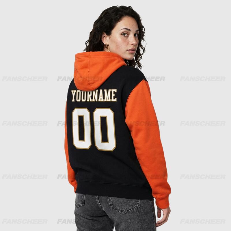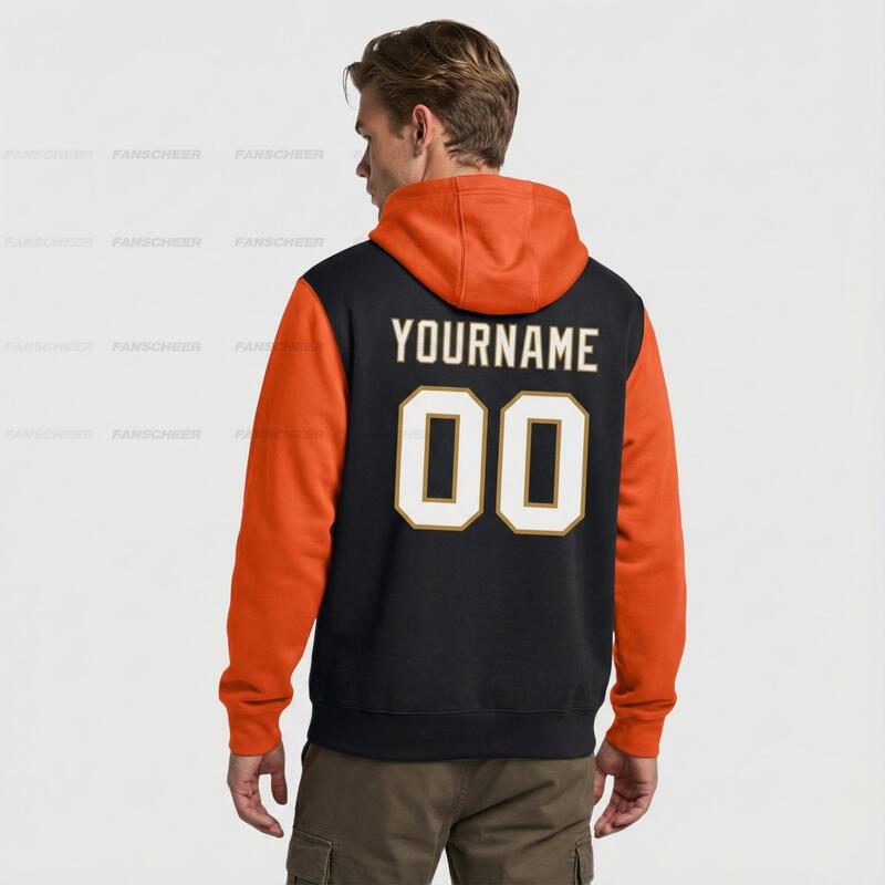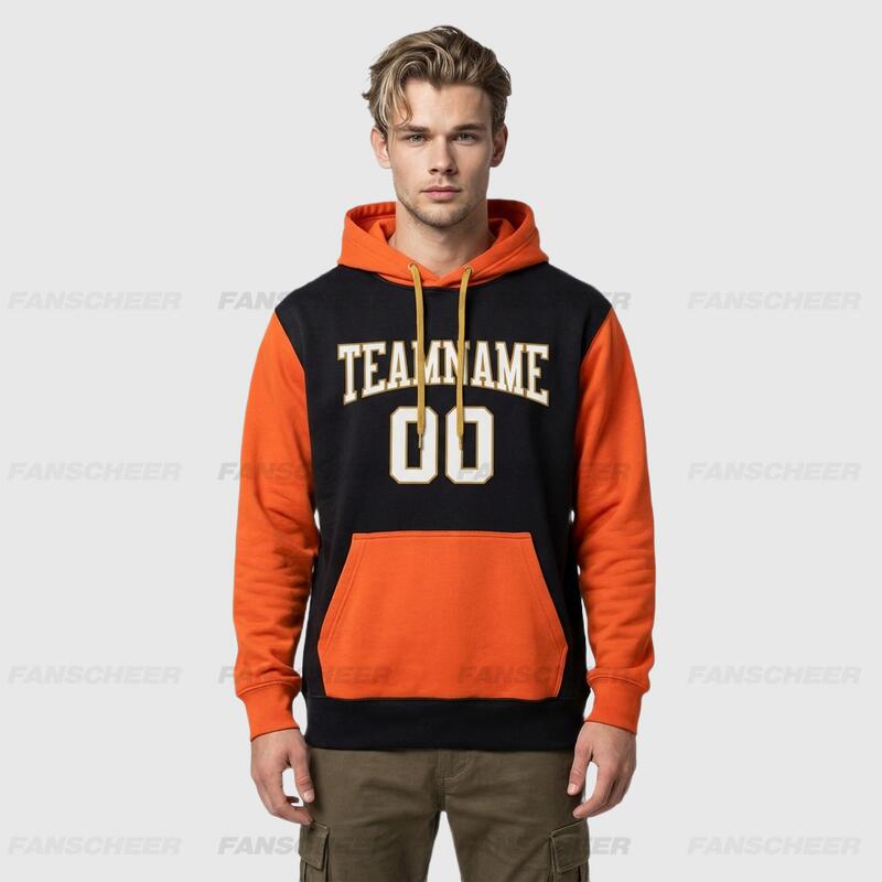 Custom Stitched Black Orange Sports Pullover Hoodie Breathable Soft Material Personalized Team Name & Number
