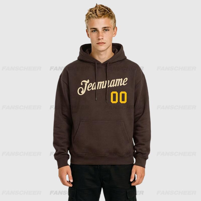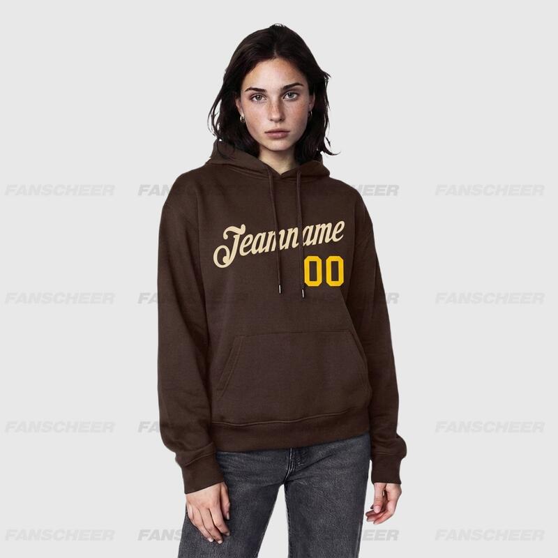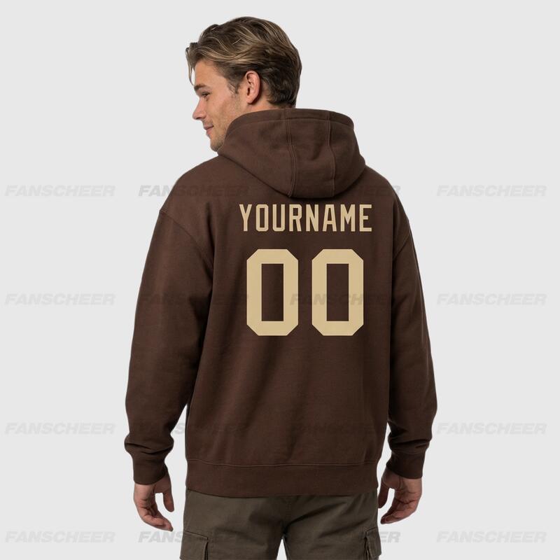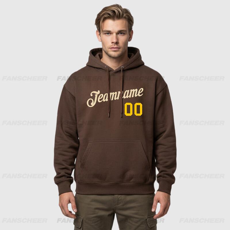 Custom Stitched Brown Sports Pullover Sweatshirt Hoodie Soft Material Personalized Team Name & Number