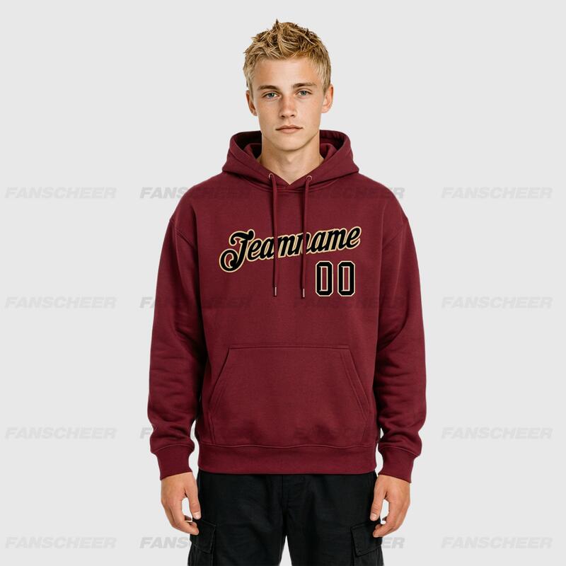 Custom Stitched Burgundy Sports Pullover Sweatshirt Hoodie Breathable Material Suitable for Sports Personalized Team Name