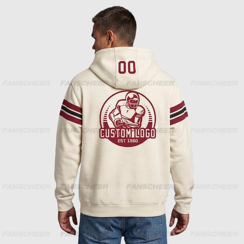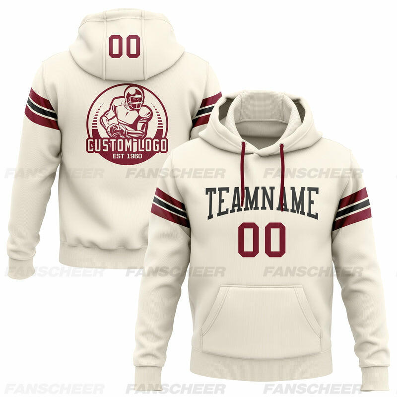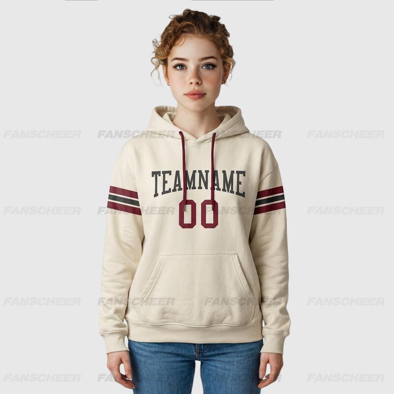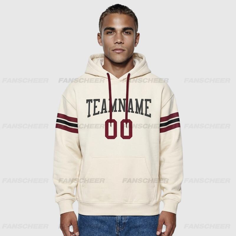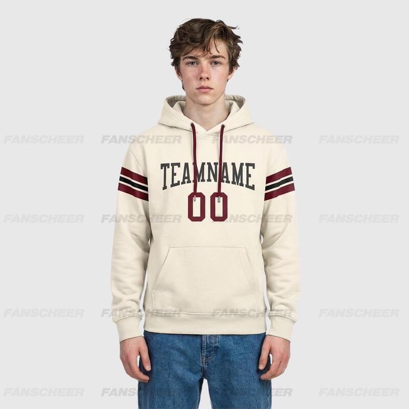 Custom Stitched Cream Football Pullover Sweatshirt Hoodie Breathable Comfortable Custom Team Name & Chosen Number