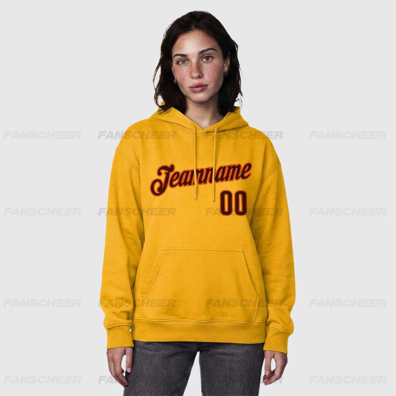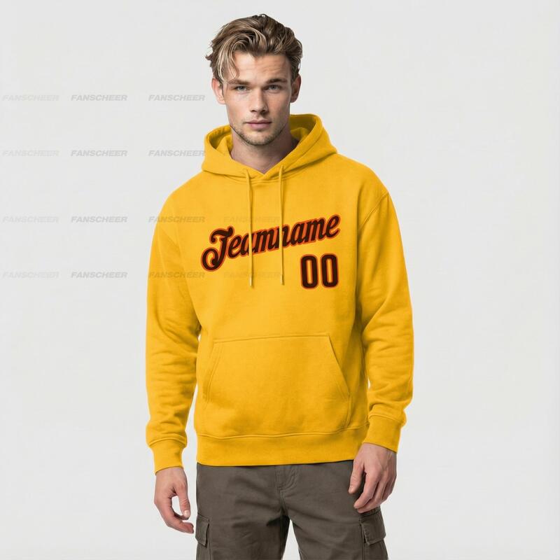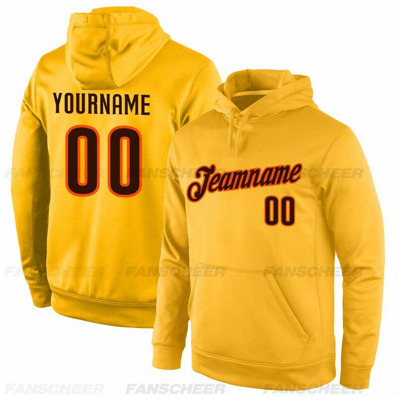 Custom Stitched Gold Sports Pullover Sweatshirt Hoodie Breathable Material Suitable for Sports Personalized Team Name
