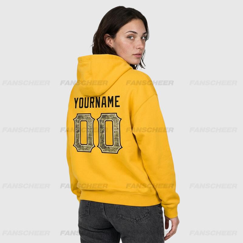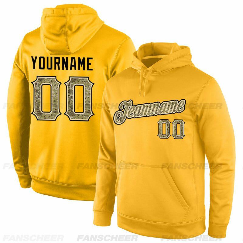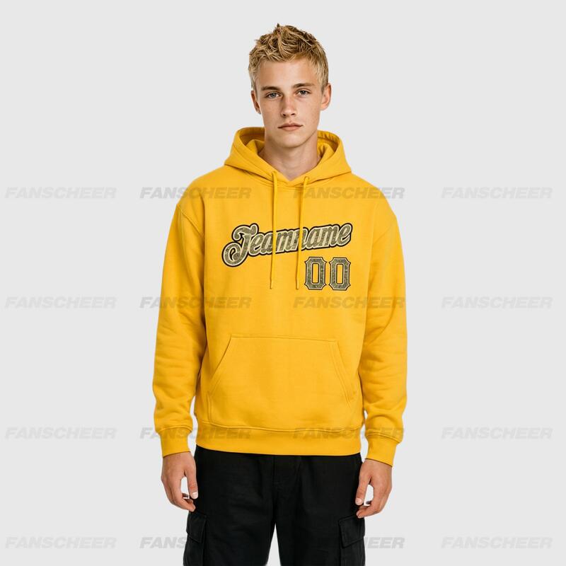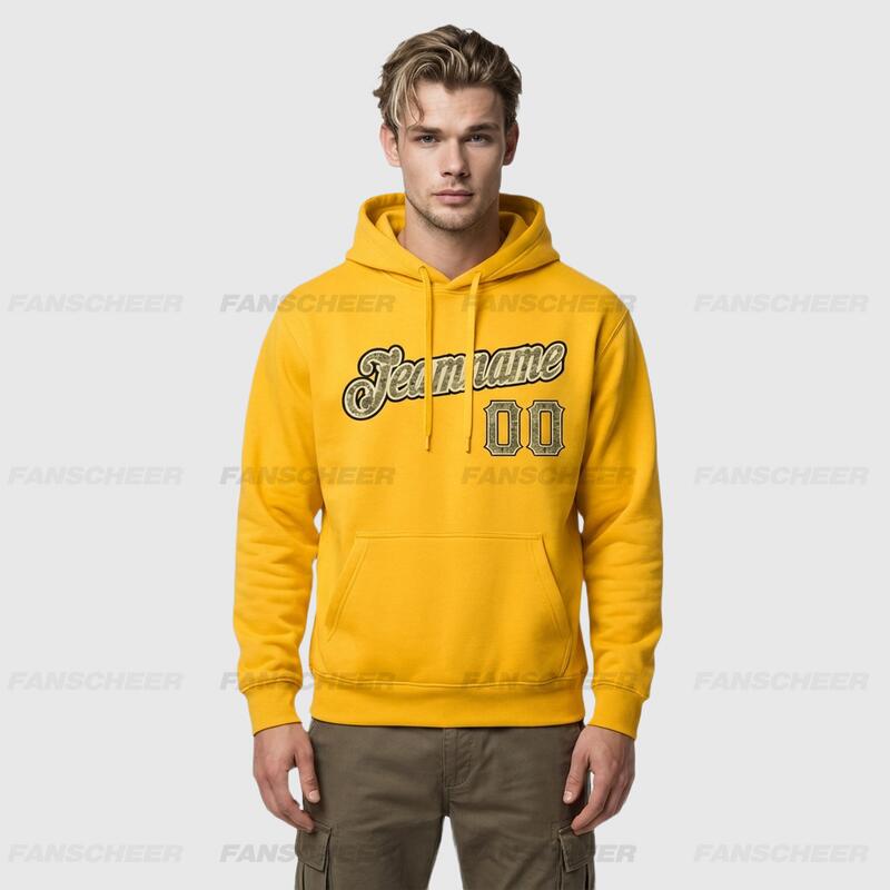 Custom Stitched Gold Sports Pullover Sweatshirt Hoodie Cozy Soft Ideal for Sports Personalized Team Number