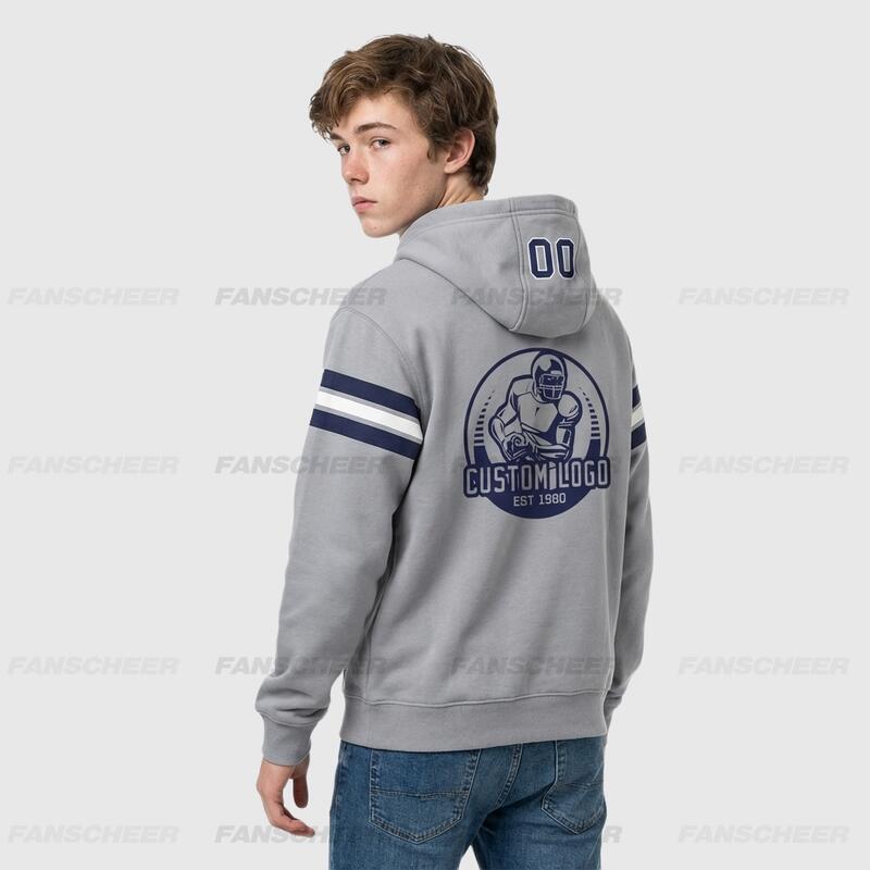 Custom Stitched Gray Football Pullover Sweatshirt Hoodie Cozy Soft Suitable for Sports Custom Team Logo