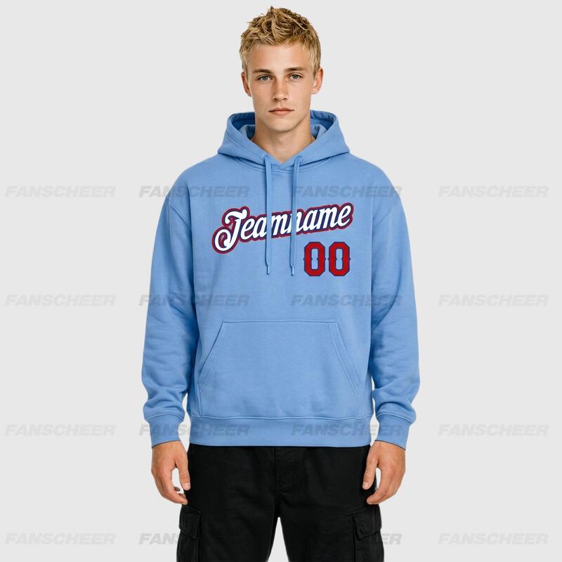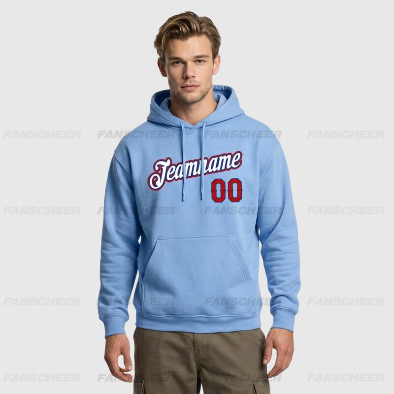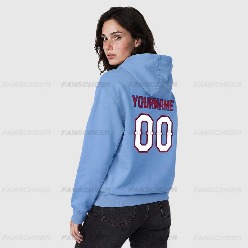 Custom Stitched Light Blue Sports Pullover Sweatshirt Hoodie Soft Material Personalized Team Name & Number