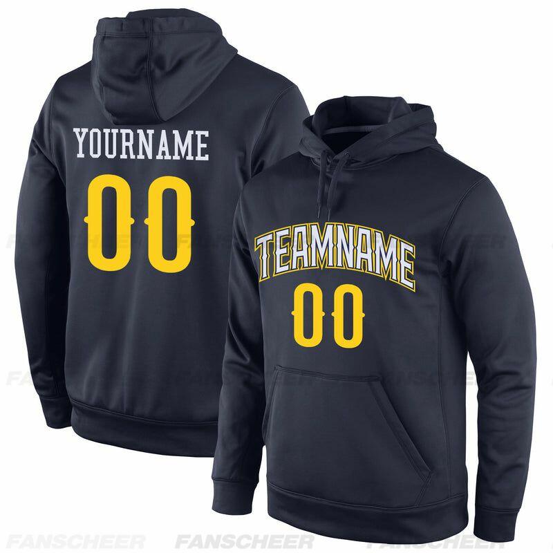 Custom Stitched Navy Sports Pullover Sweatshirt Hoodie Soft Material Personalized Team Name & Number
