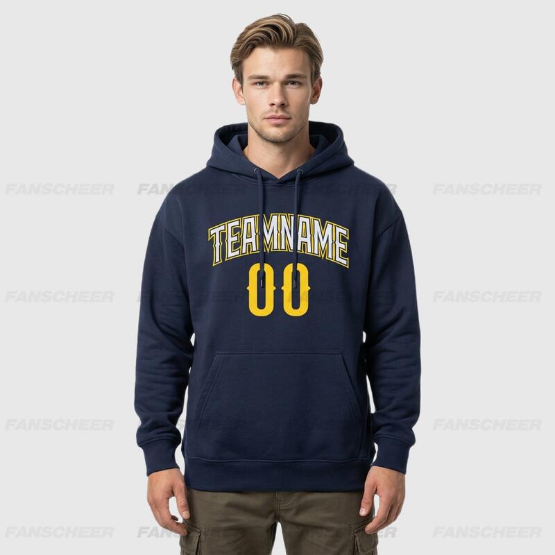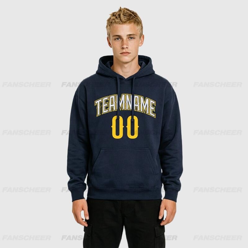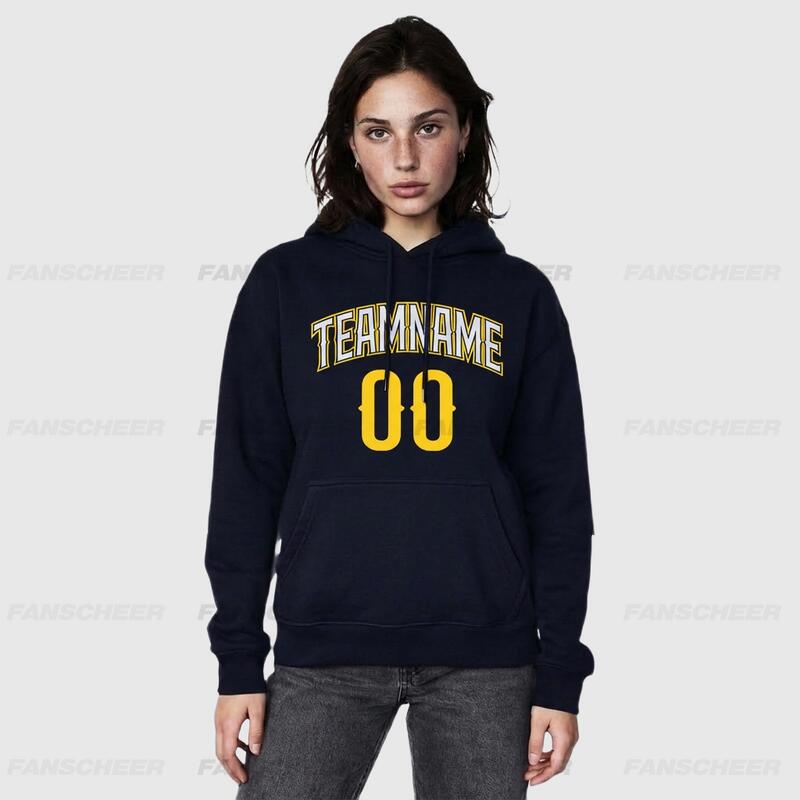 The Fanscheer custom pullover sweatshirt hoodie blends comfort with style, a masterpiece crafted with meticulous attention to detail. Slip into this custom hoodie featuring embroidered numbers and get ready to unwind while showcasing your unique flair.