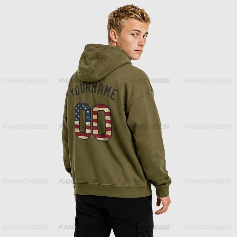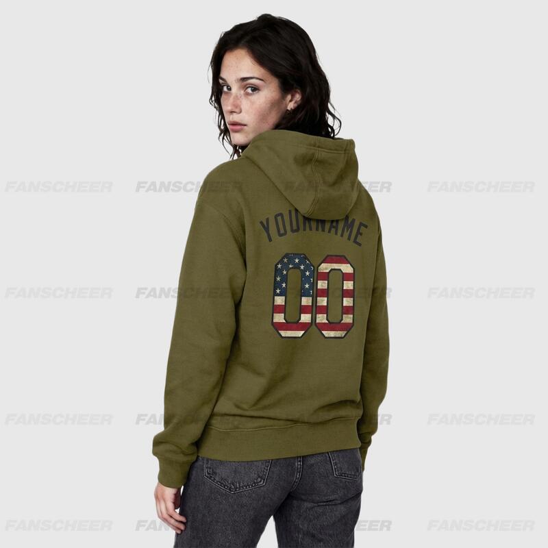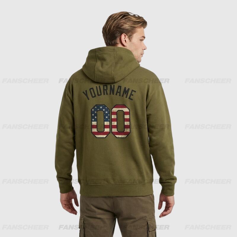 Custom Stitched Olive Vintage USA Flag-Black Sports Pullover Sweatshirt Salute To Service Hoodie