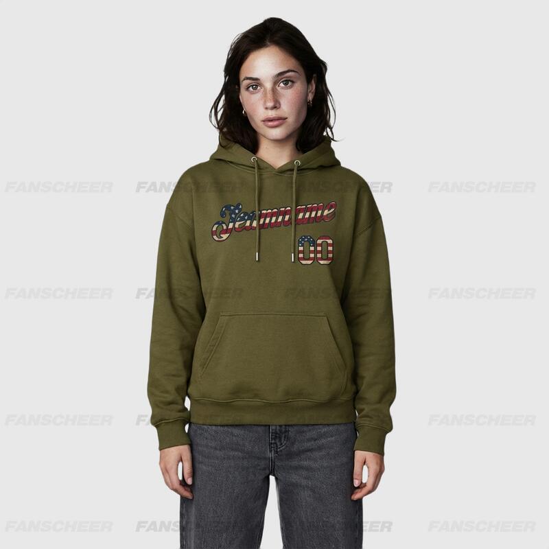 The Fanscheer custom pullover sweatshirt hoodie blends comfort with style, a masterpiece crafted with meticulous attention to detail. Slip into this custom hoodie featuring embroidered numbers and get ready to unwind while showcasing your unique flair.