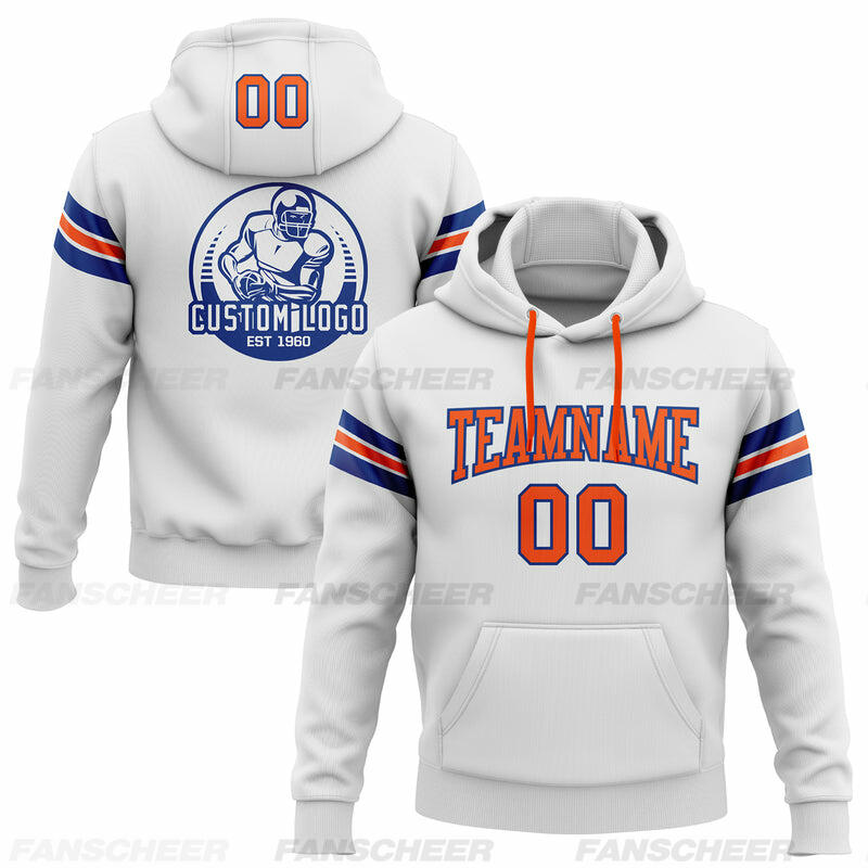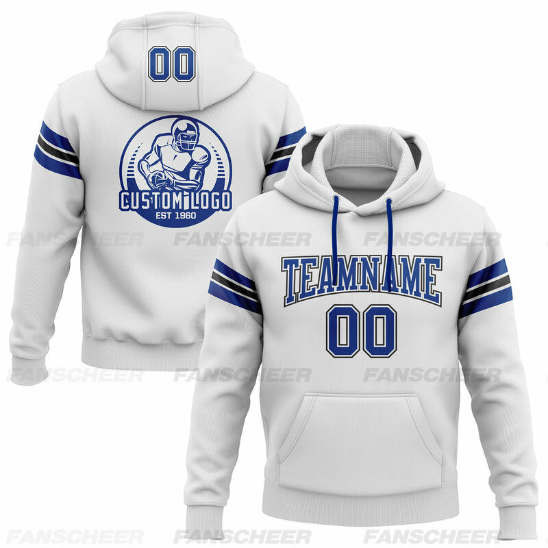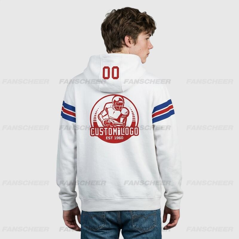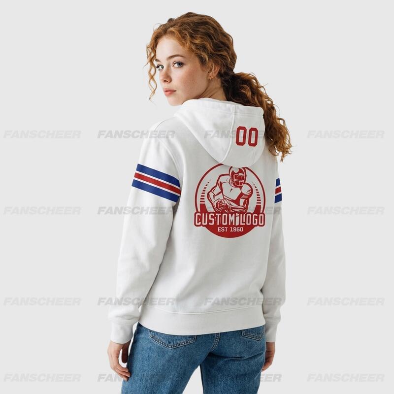 Custom Stitched White Football Pullover Hoodie Soft Comfortable Fabric Personalized Team Name & Unique Number