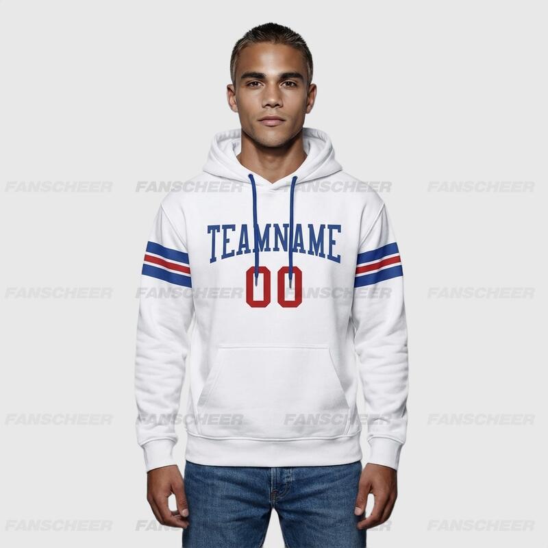 The Fanscheer custom pullover sweatshirt hoodie blends comfort with style, a masterpiece crafted with meticulous attention to detail. Slip into this custom hoodie featuring embroidered numbers and get ready to unwind while showcasing your unique flair.