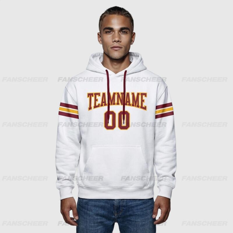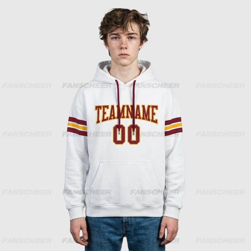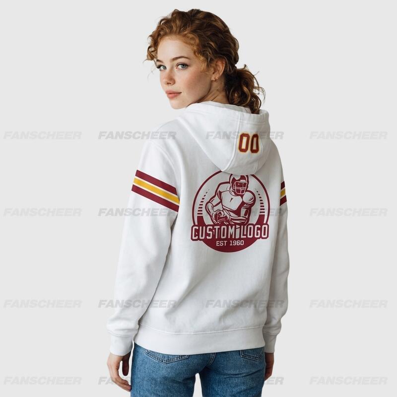Custom Stitched White Football Pullover Hoodie Soft Material Cozy Wear Personalized Team Logo & Number