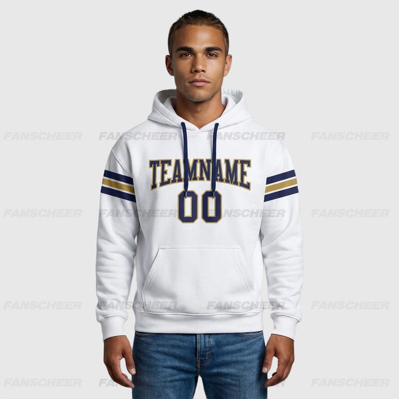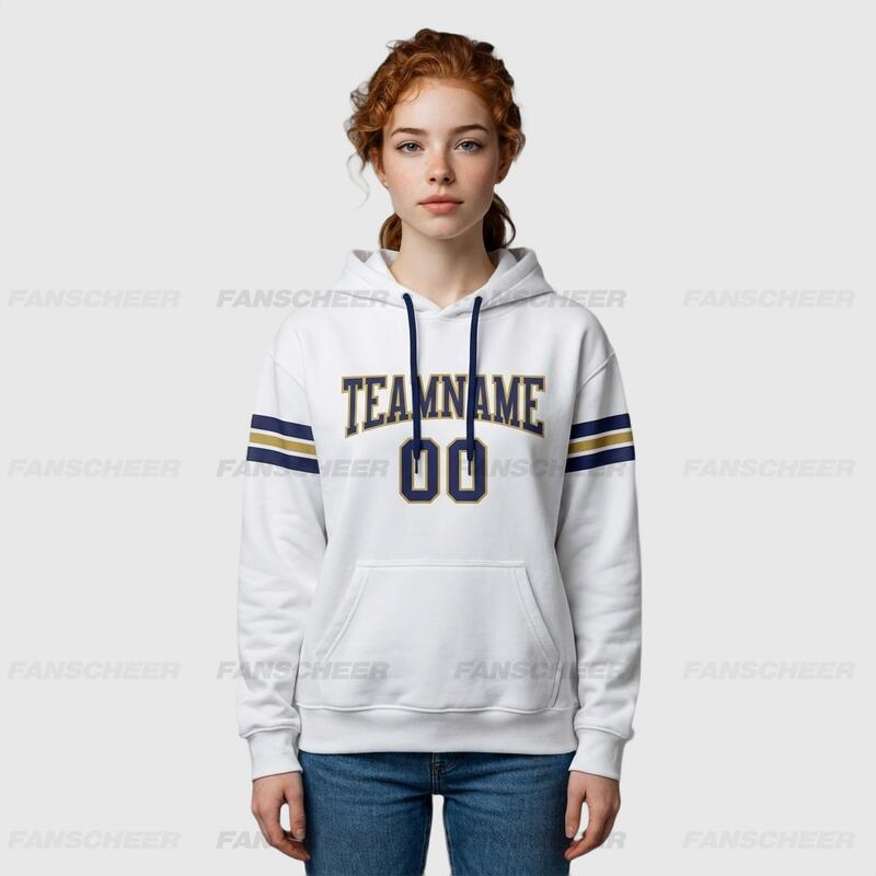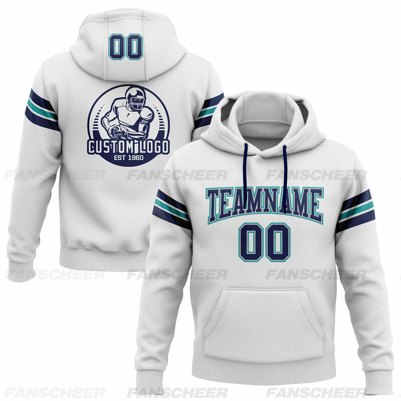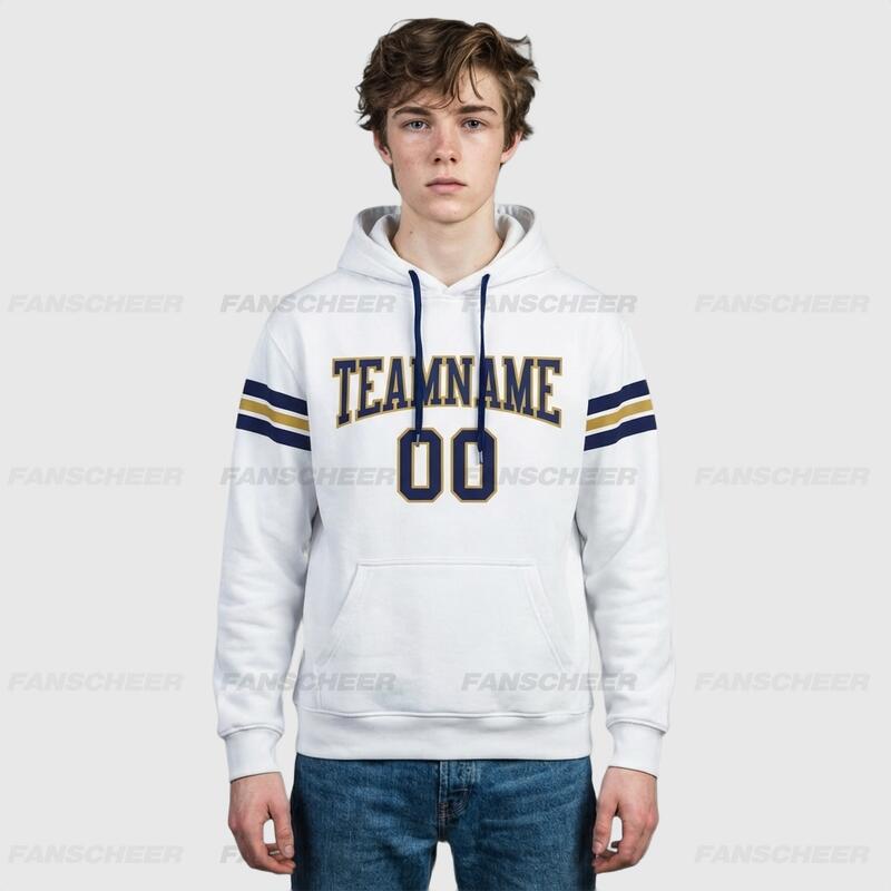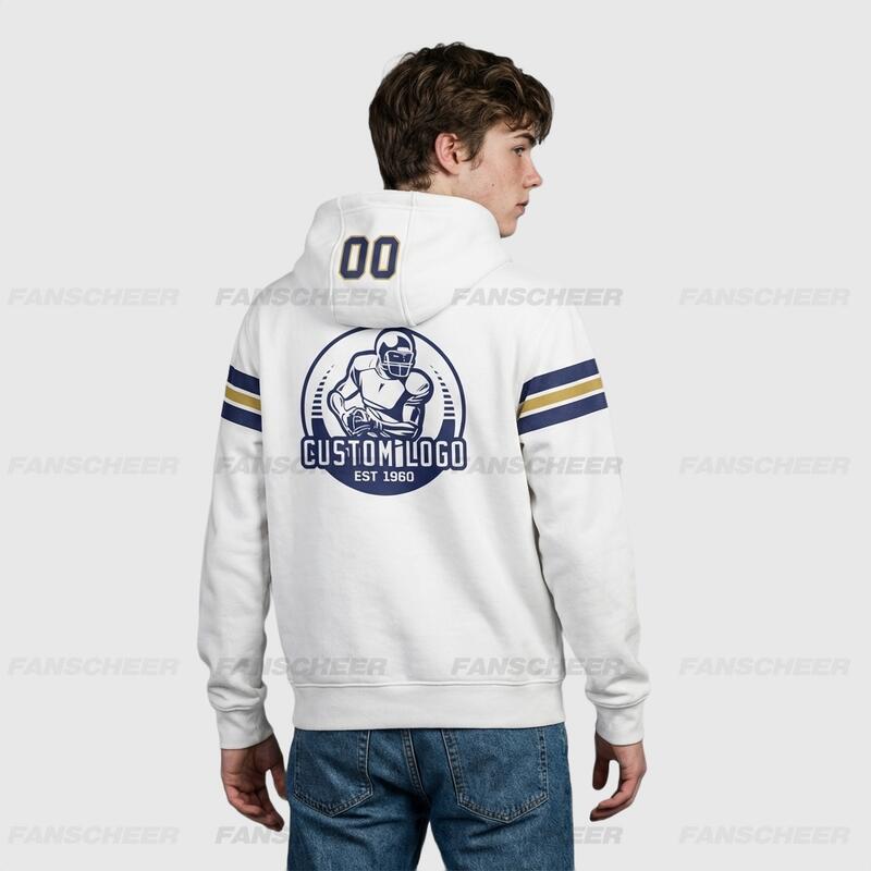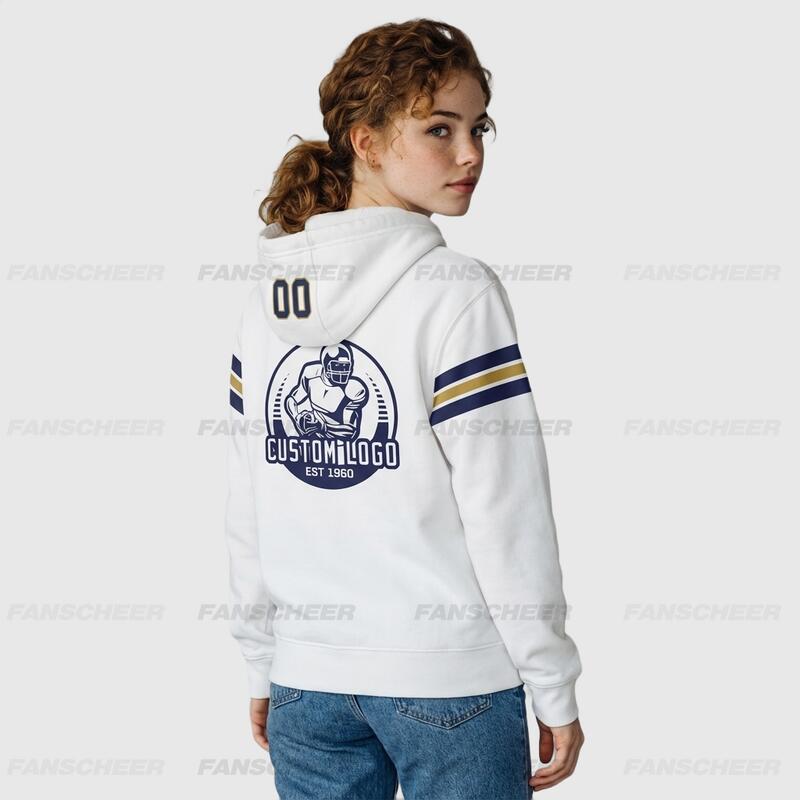 Custom Stitched White Football Pullover Sweatshirt Hoodie Cozy Ideal for Sports Custom Team Logo & Number