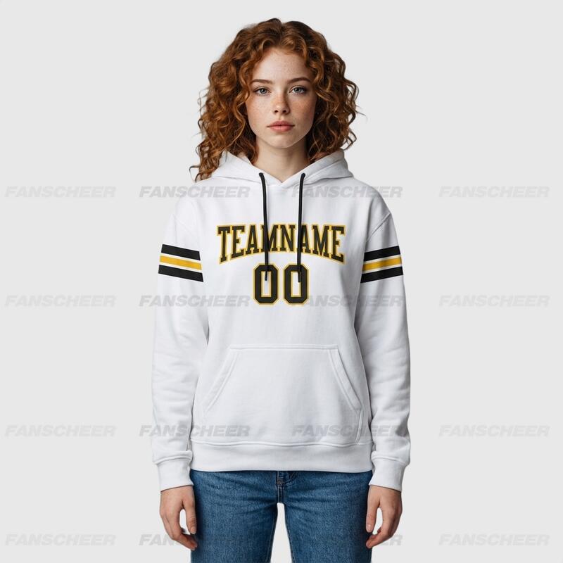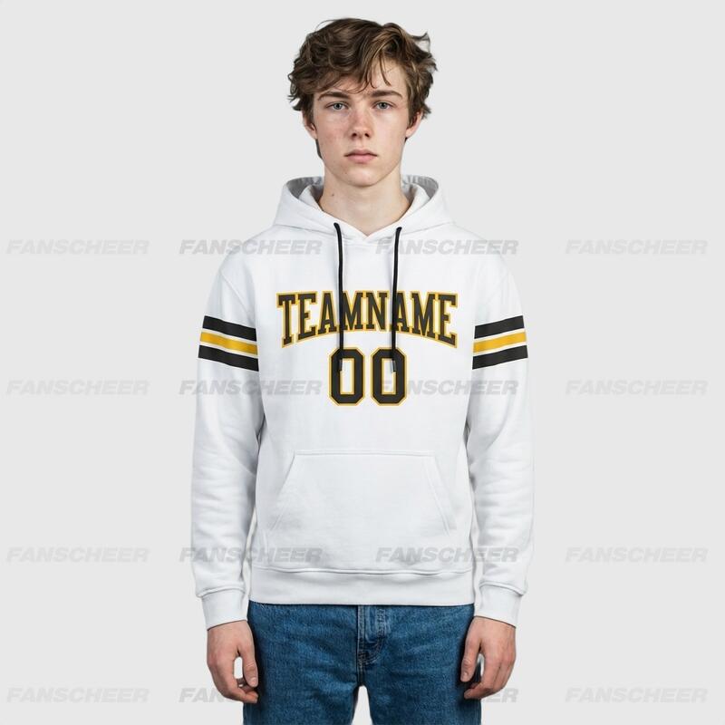The Fanscheer custom pullover sweatshirt hoodie blends comfort with style, a masterpiece crafted with meticulous attention to detail. Slip into this custom hoodie featuring embroidered numbers and get ready to unwind while showcasing your unique flair.