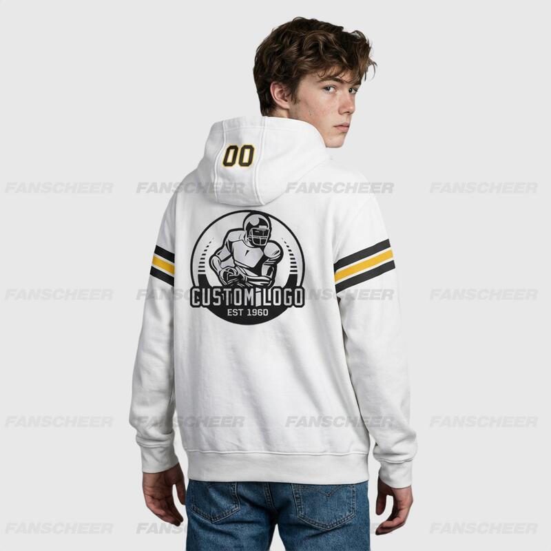 Custom Stitched White Football Pullover Sweatshirt Hoodie Cozy Soft Ideal for Sports Personalized Team Name