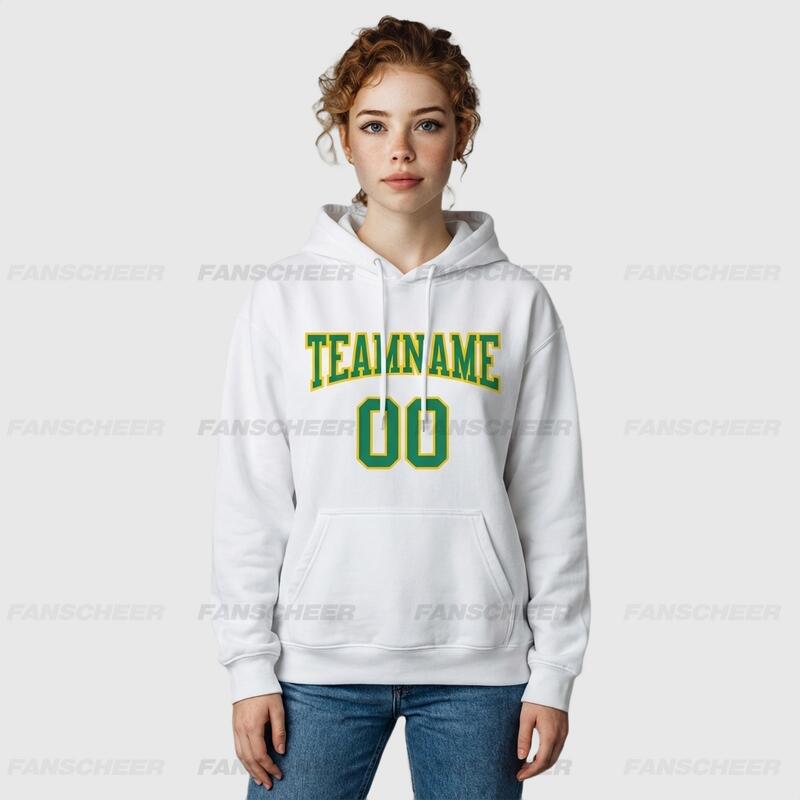 The Fanscheer custom pullover sweatshirt hoodie blends comfort with style, a masterpiece crafted with meticulous attention to detail. Slip into this custom hoodie featuring embroidered numbers and get ready to unwind while showcasing your unique flair.