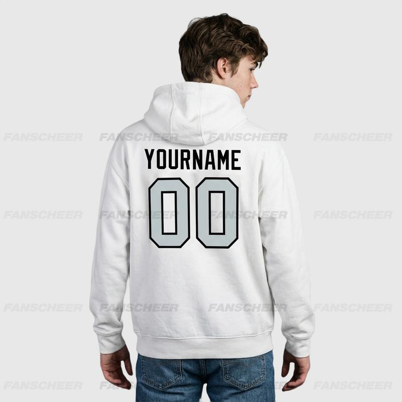 Each fanscheer® tailored pullover sweatshirt hoodie is meticulously personalized with the following features: